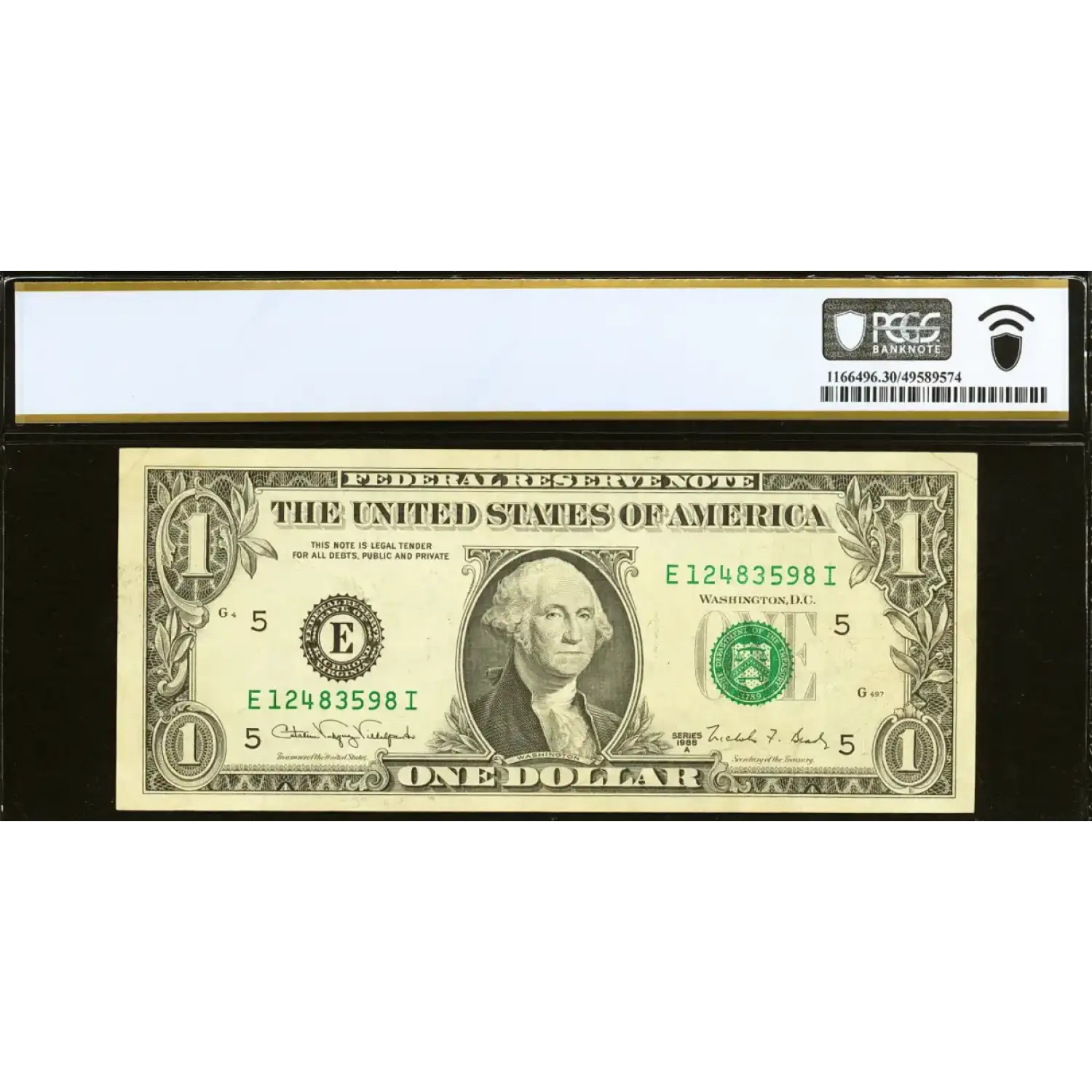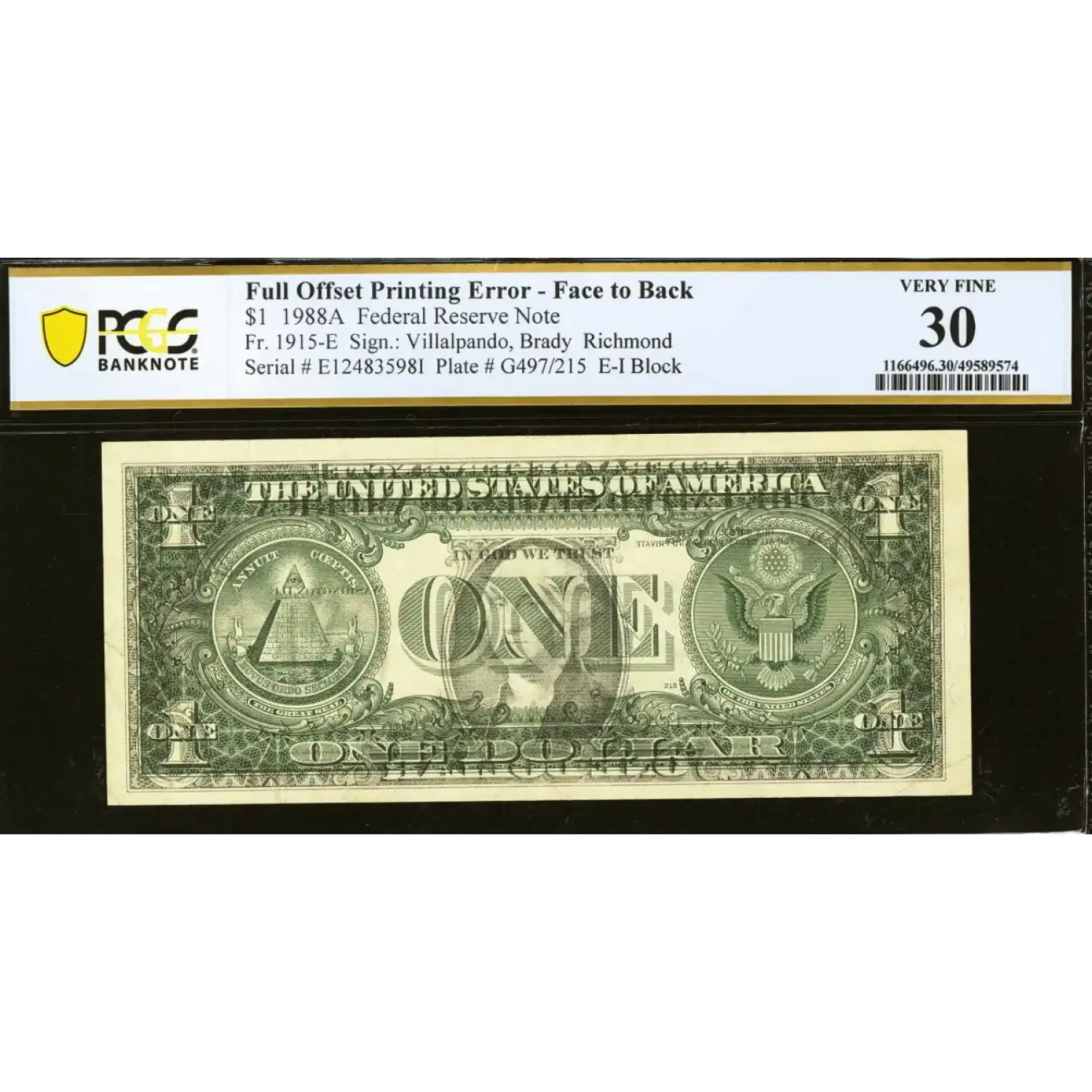 Washington appears on each side of this one dollar bill with a complete face to back offset error. Housed in a new and clean problem-free holder!