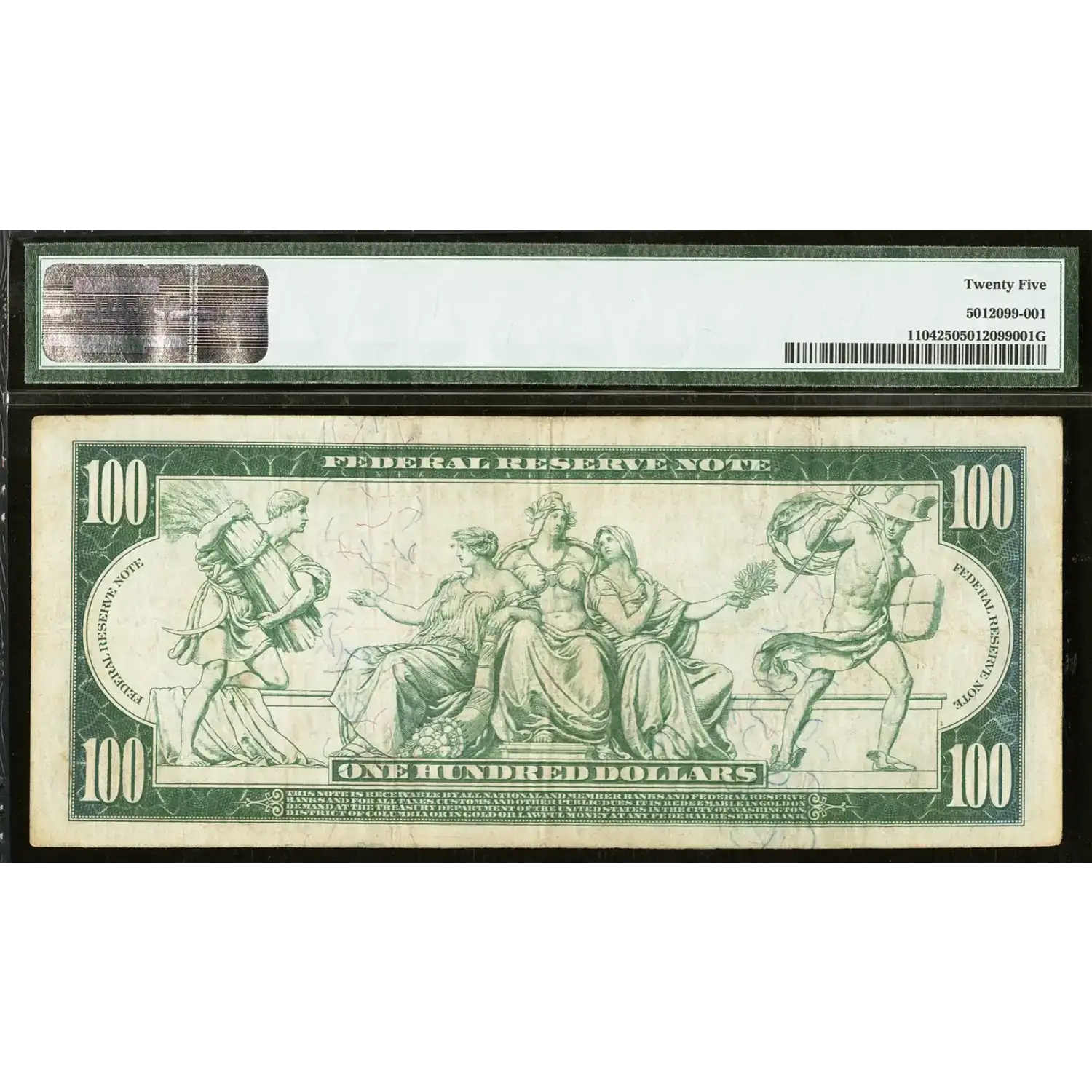 An evenly circulated example of this blue seal Atlanta $100 FRN that has good color and solid paper for the grade.