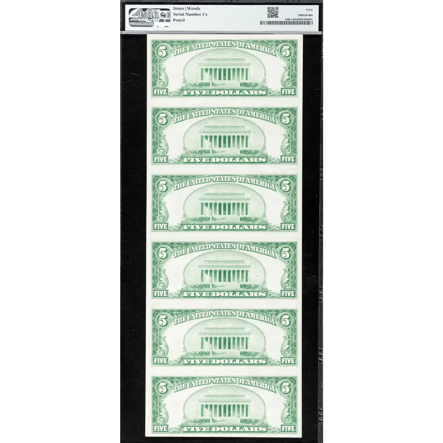 Serial Number 1 Woodstock, VT - $5 1929 Ty. 1 The Woodstock National Bank Ch. # 1133 Uncut Sheet PMG Extremely Fine 40.