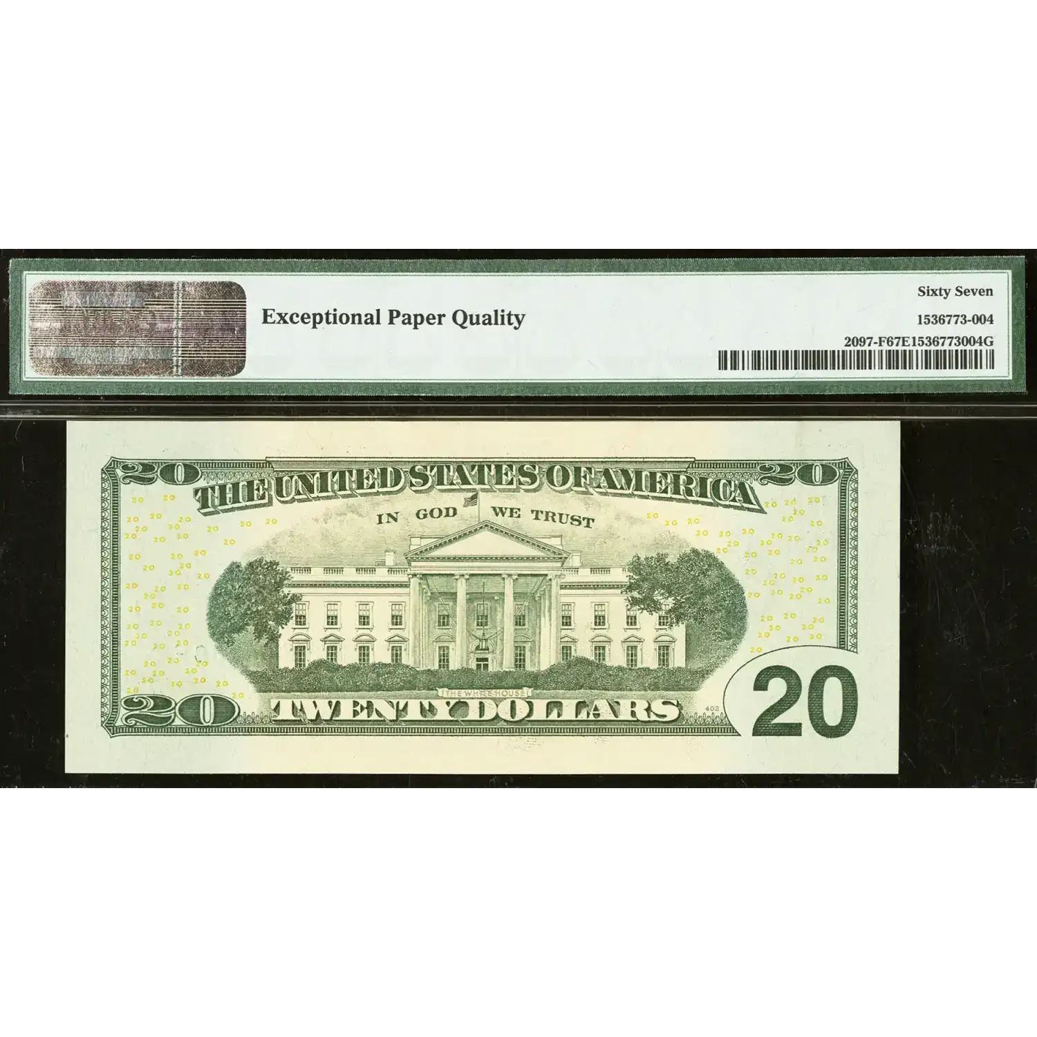 Ascending Ladder Serial Number 23456789 Fr. 2097-F $20 2013 Federal Reserve Note. PMG Superb Gem Unc 67 EPQ.