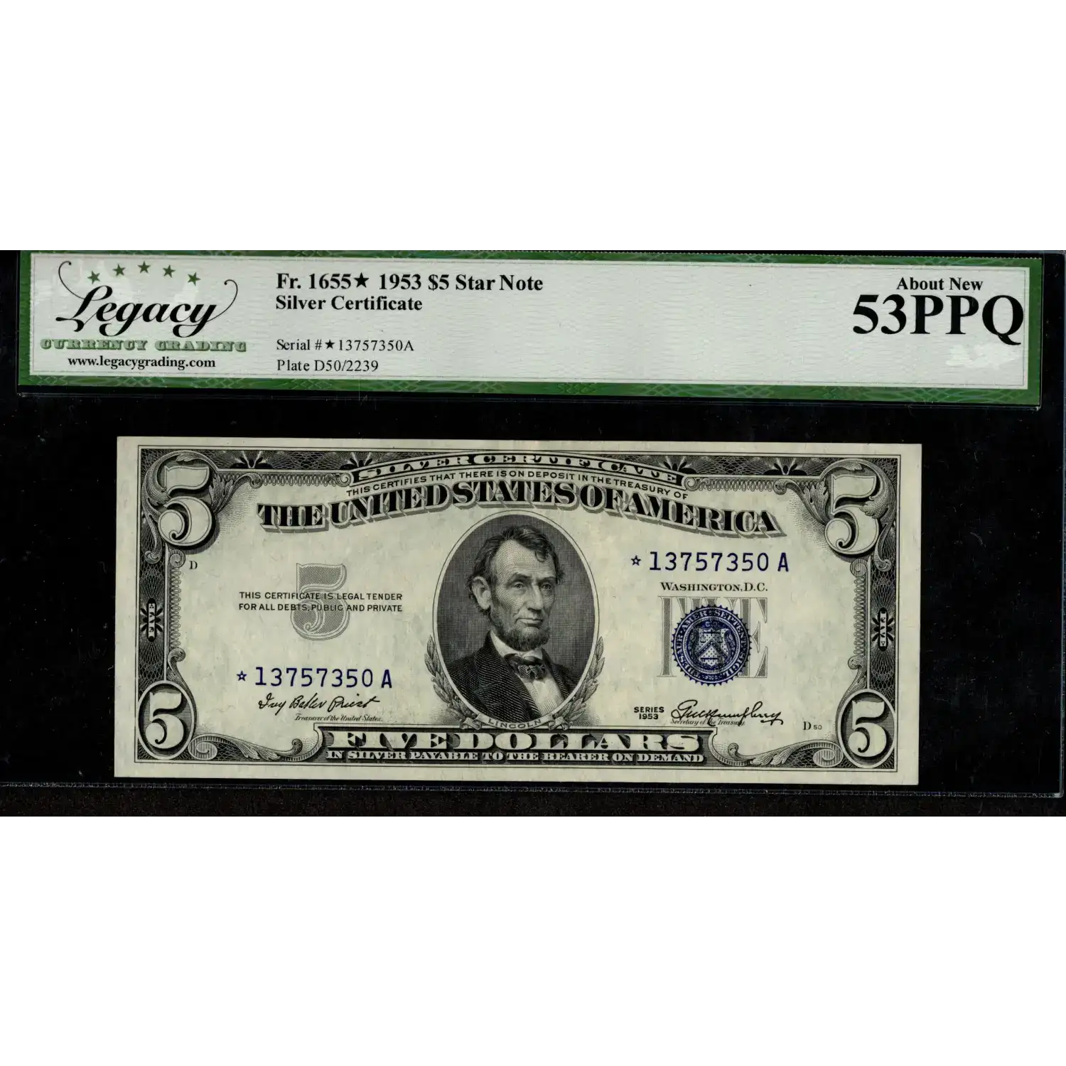 A stunning 1953 five dollar blue seal STAR from the *-A block that's been preserved in fully-original condition in a grade a collector can be proud of!
