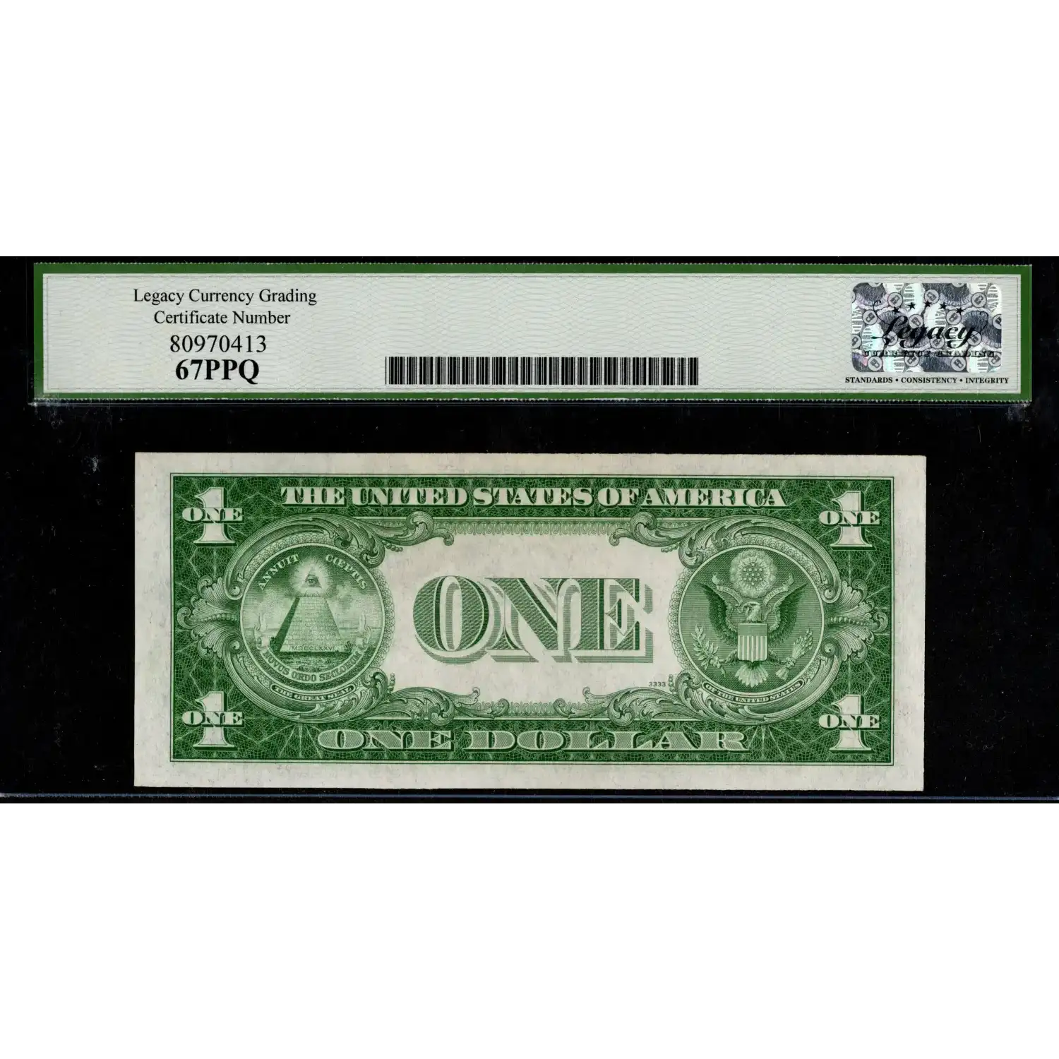 A stunning blue seal star note from the *-B Block on this $1 1935-A Silver Certificate (Fr. 1608*) tied for the finest known with nothing above 67 and only a handful of 66s available from all the grading services. If you're seeking a top pop early replacement example, here's your note.