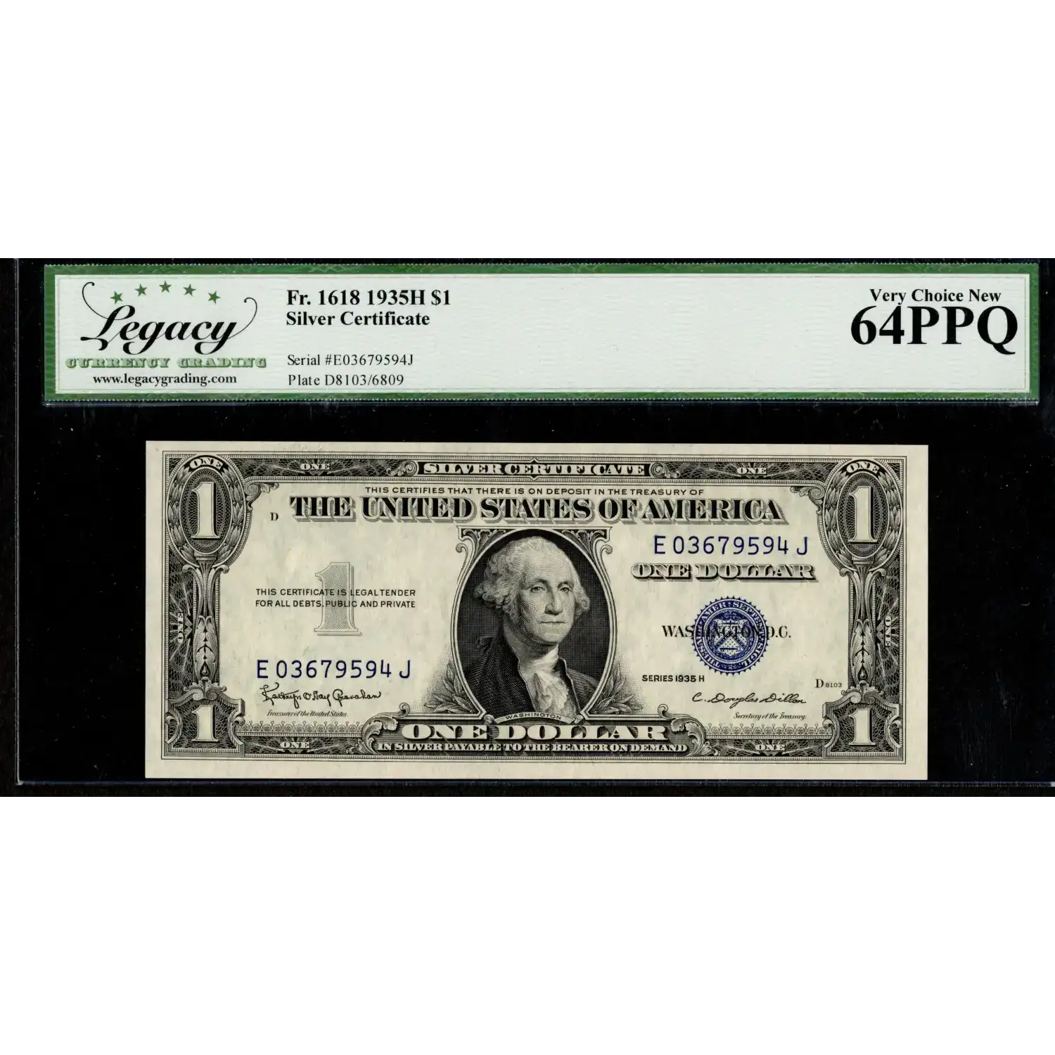 Enjoy this stunning opportunity to secure an original and attractive example of an early and significant year for small size silver certificates. The 1935-H was the first complete series to bear the motto, "In God We Trust" on the back.