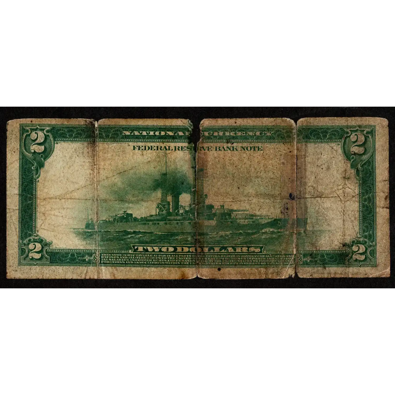 A cheap and iconic design of US Paper Money that belongs in every large size collection. This Battleship has a few splits along the fold lines and a few pieces missing as shown in the images, but if you don't mind a few flaws and a great price to fill the Battleship void in your collection, this note was destined for you.