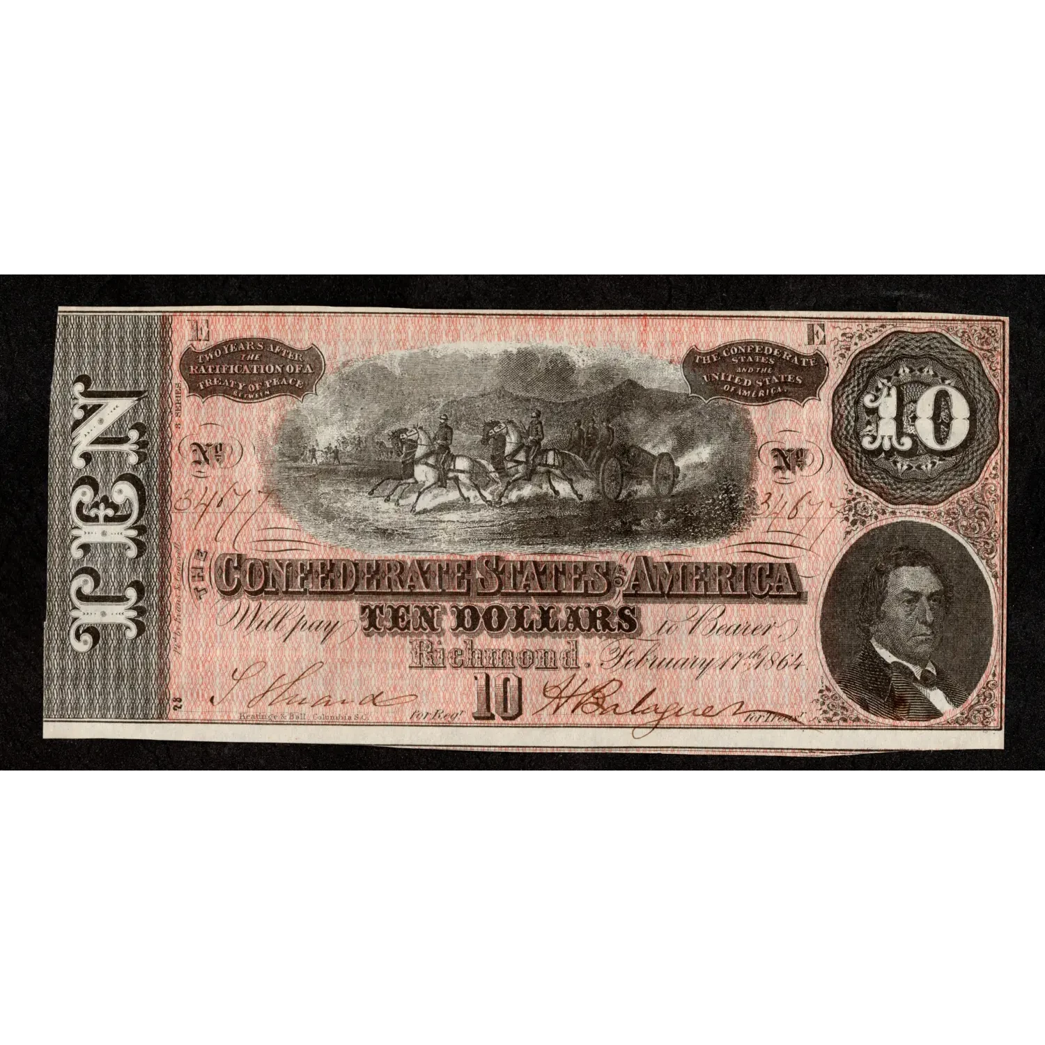 Battlefield scene of horses pulling cannon. Bust of Secretary of State R.M.T. Hunter at right. Fully original note with bold inks.