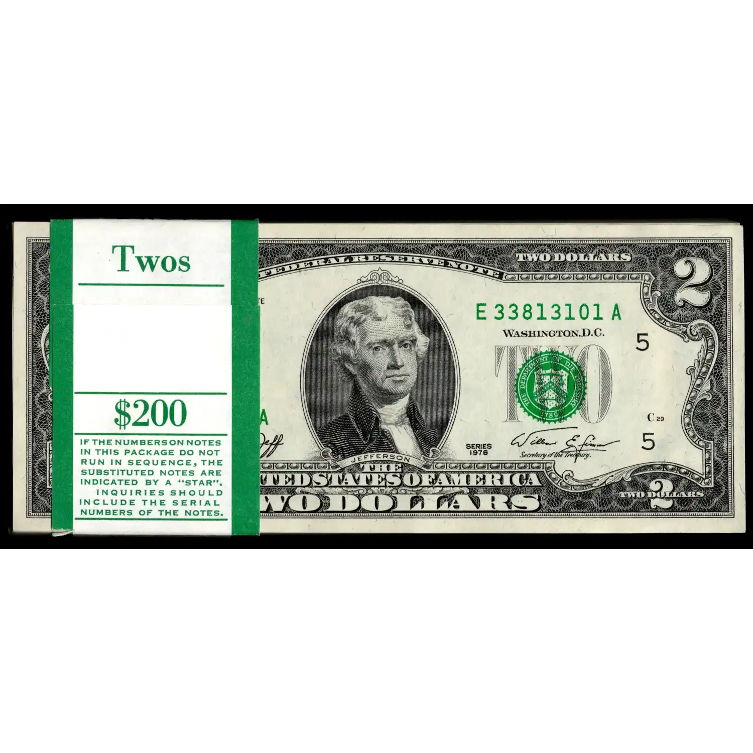 Enjoy a scarce and exciting opportunity to secure a fully-original pack of Richmond Bicentennial Deuces. This pack of 100 consecutive is still bound by its original BEP strap and has exceptional margins! It's been a bit since we've had one of these so we don't anticipate it will last long.