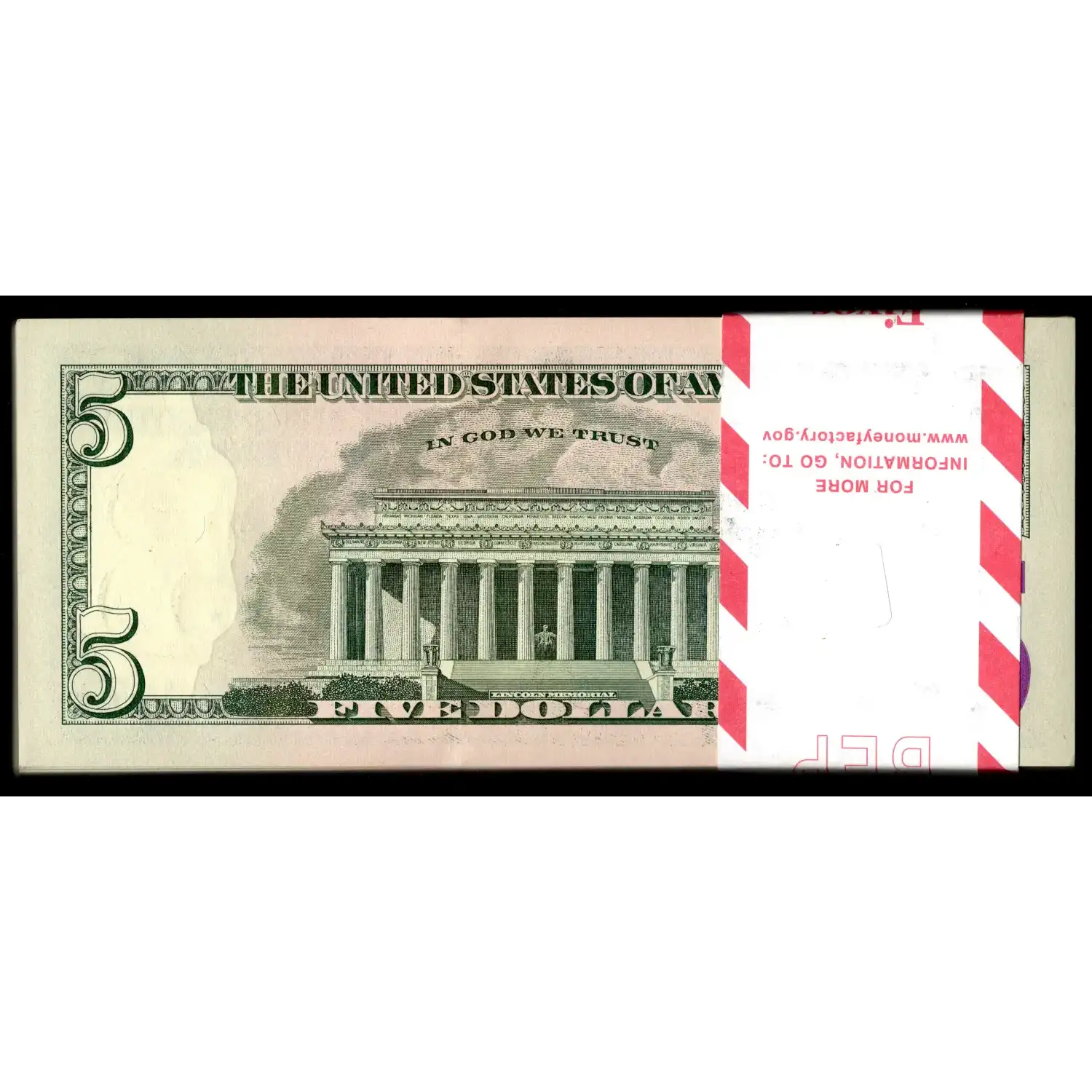 A fully-original pack of 100 consecutive $5 2013 Star Notes from Atlanta! This colorized pack has great margins and is still wrapped by its original BEP strap.