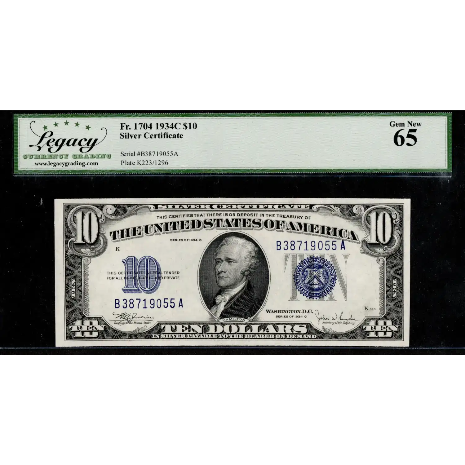 Nice centering and wonderful color are the hallmarks of this well preserved $10 1934-C Blue Seal Hamilton.