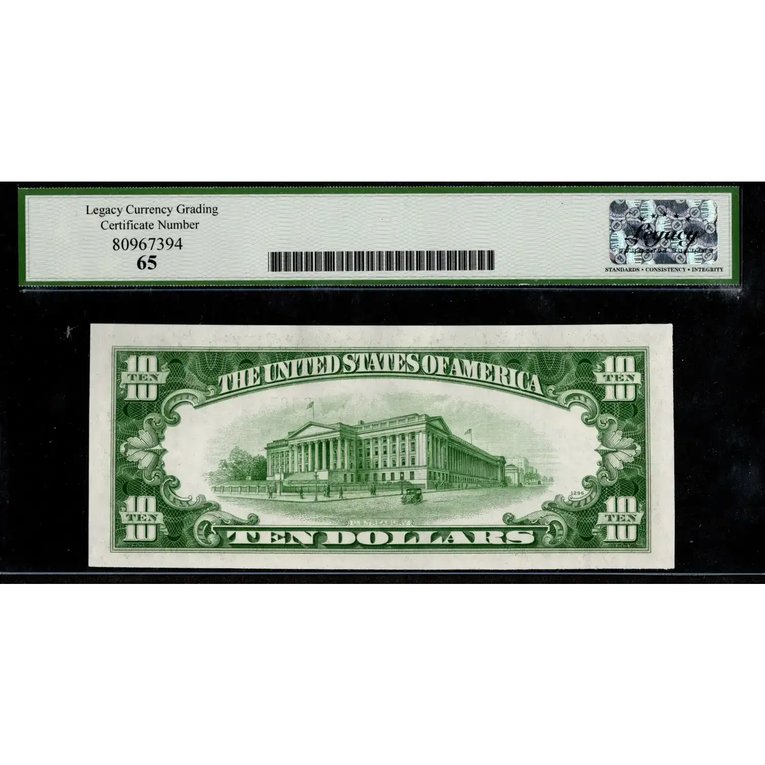 Nice centering and wonderful color are the hallmarks of this well preserved $10 1934-C Blue Seal Hamilton.