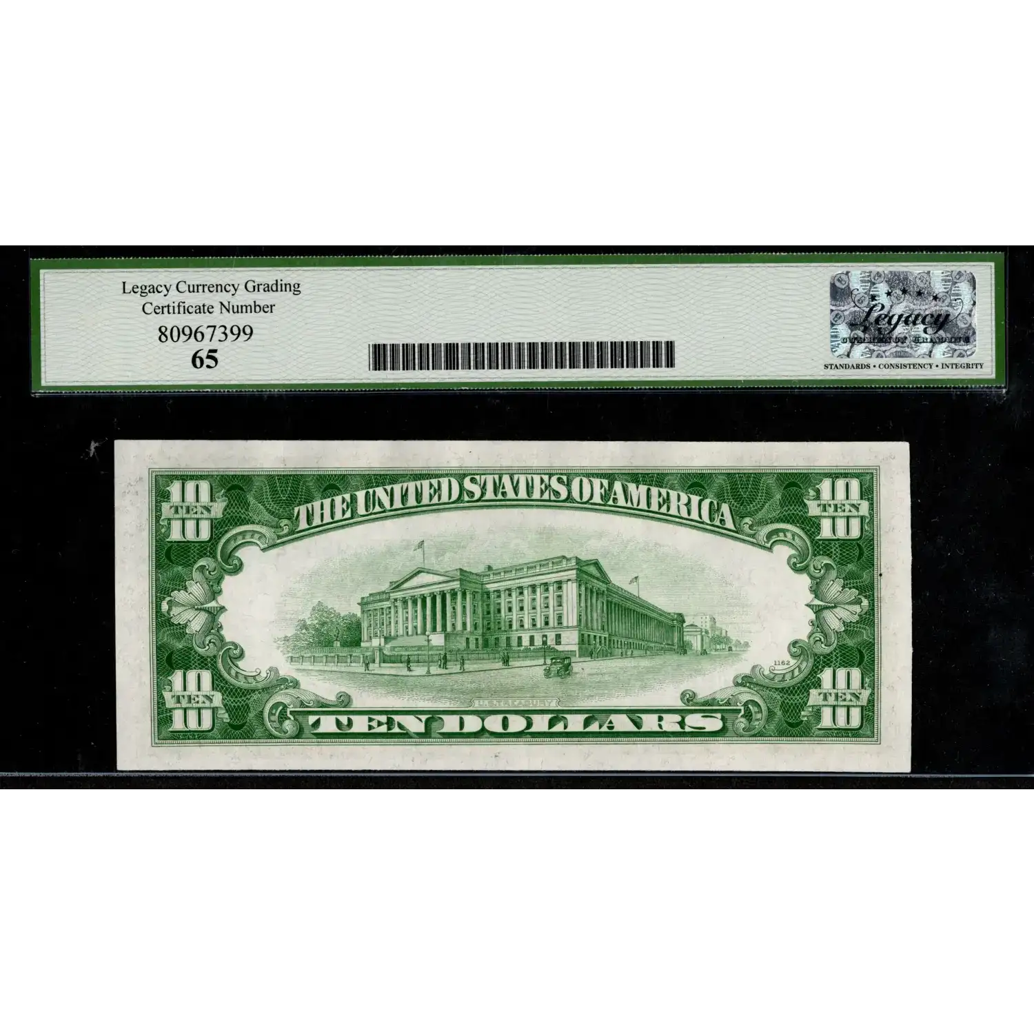 Nice centering and wonderful color are the hallmarks of this well preserved $10 1934-C Blue Seal Hamilton.