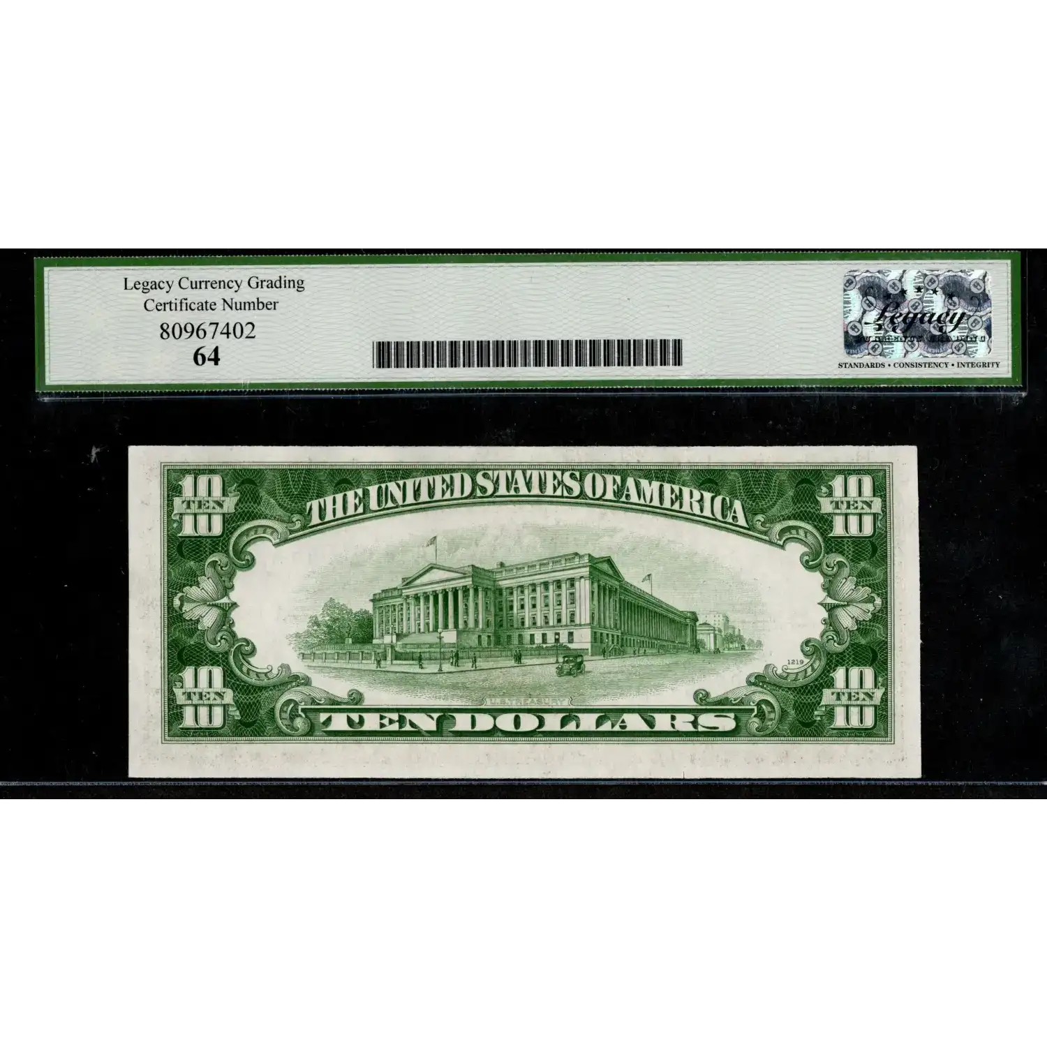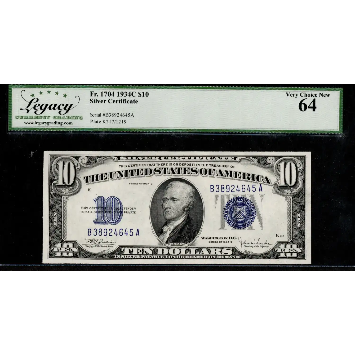 Nice centering and wonderful color are the hallmarks of this well preserved $10 1934-C Blue Seal Hamilton.