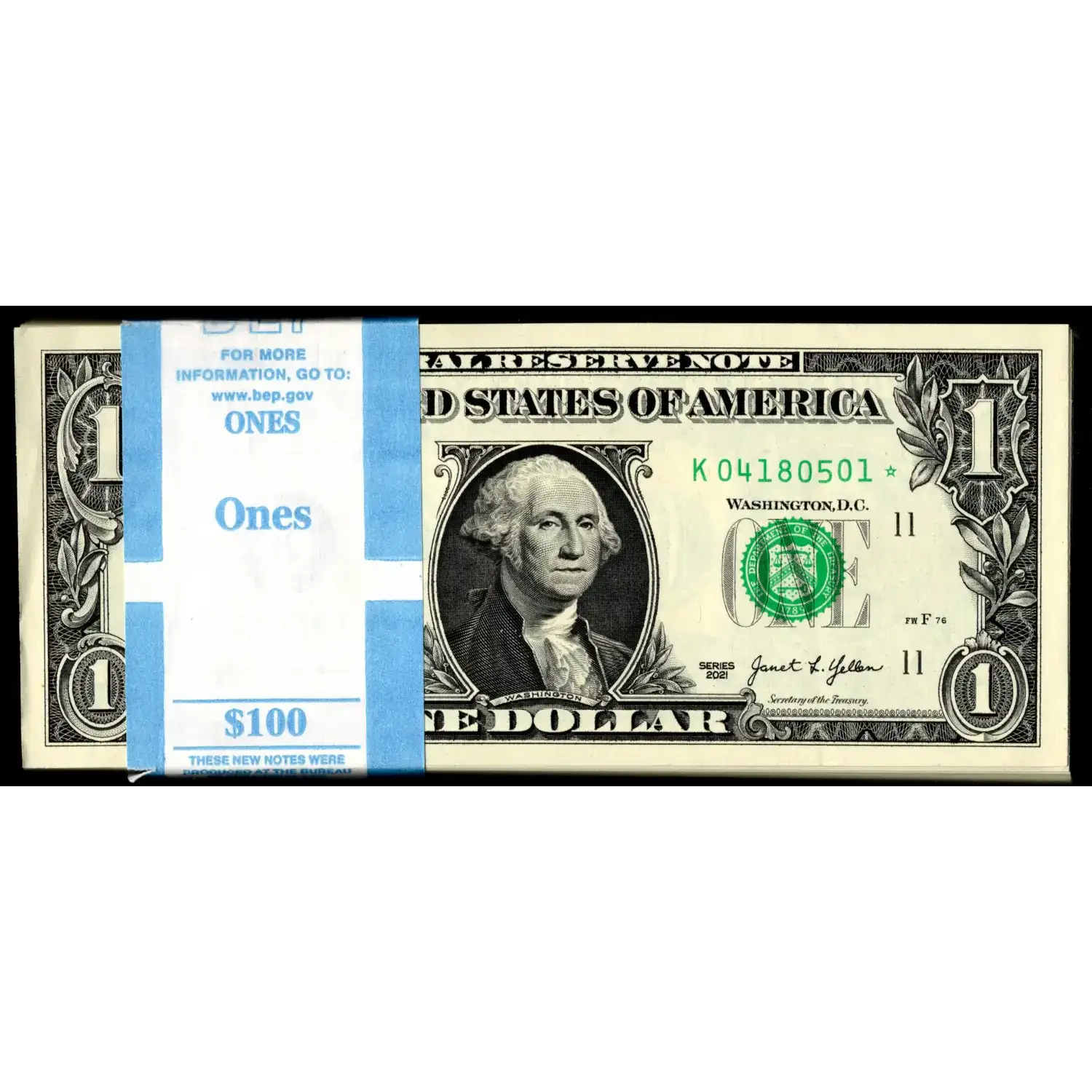 100 original and sequential star notes preserved in Gem condition still bound by its as-issued BEP strap.