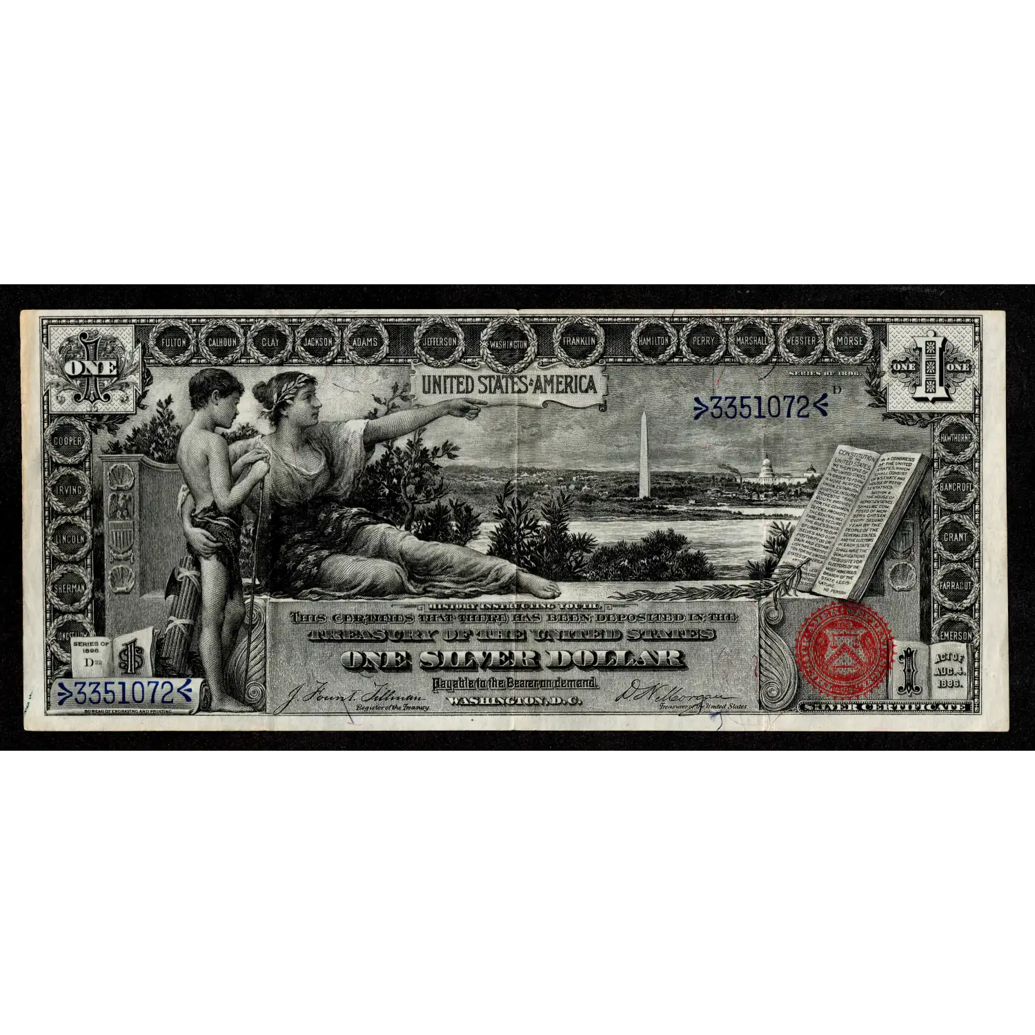 A stunning and original $1 1896 Silver Certificate. This Educational Ace features the allegorical image of "History Instructing Youth" on the face and the nation's first couple, George and Martha Washington, on the back. This is a textbook XF 40 and just arrived so we're offering it to our collectors at a discount so one can secure it for less than its identically graded competitors. If you don't mind a discount and a great looking example of what's often called, "America's prettiest money" this Educational ace is for you.
