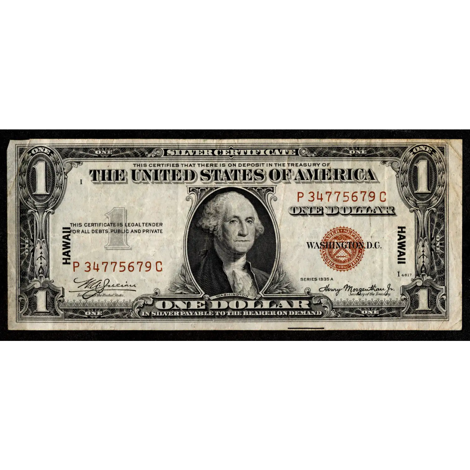 An attractive and affordable opportunity to acquire a WWII Emergency Issue. This note has a bold brown seal and serials which allowed it to be readily demonetized should it have fallen into enemy hands.