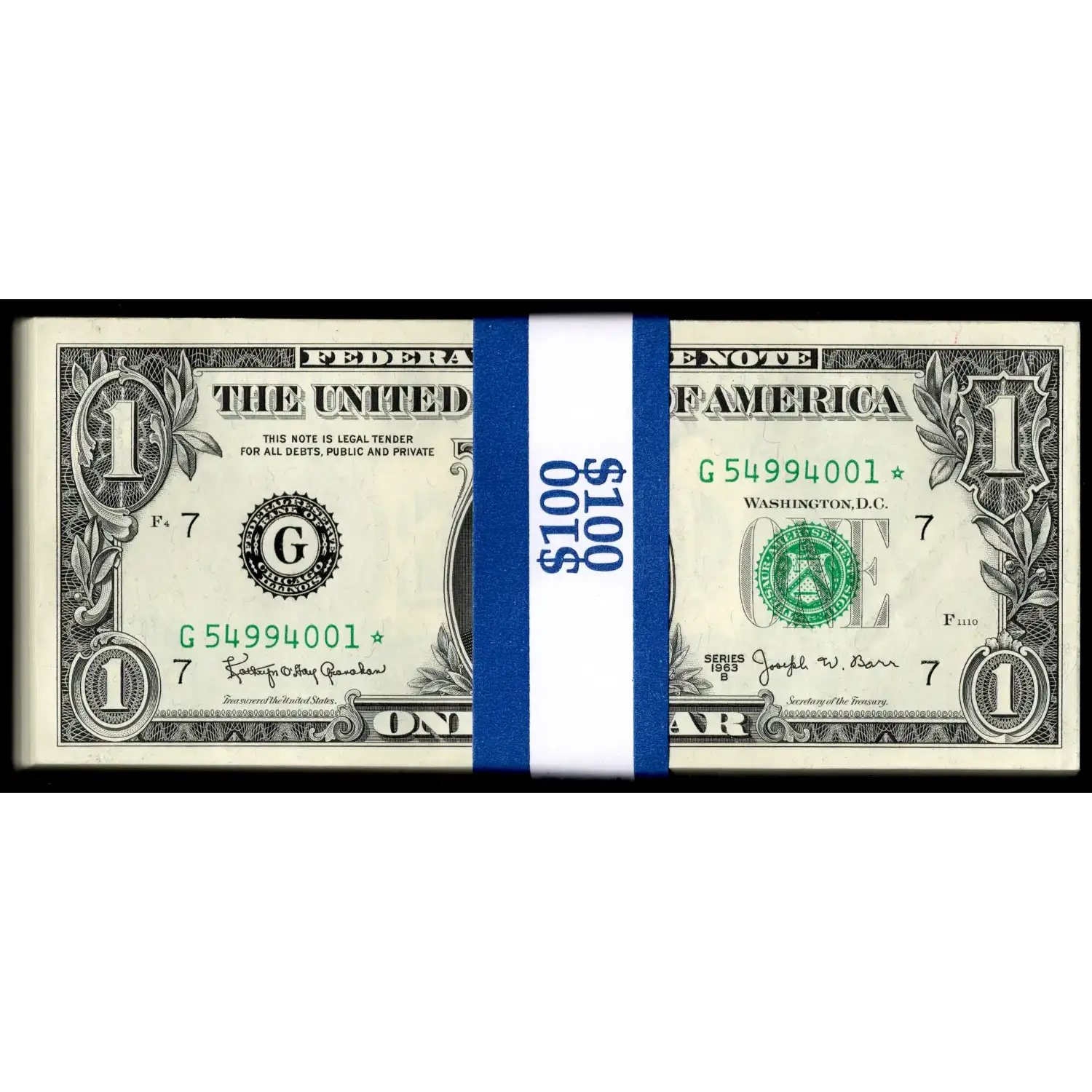 As such, notes with his engraved signature on them are wildly popular amongst collectors. Individual star examples sell frequently for $80 - $100 with true packs of 100 consecutive stars quite scarce as many of the limited number of "pack" survivors are actually two or more different runs of serial numbers...meaning the pack is not fully sequential. Even so, it can be many years or even a decade between public auction opportunities and recent examples have sold for more than $3k.