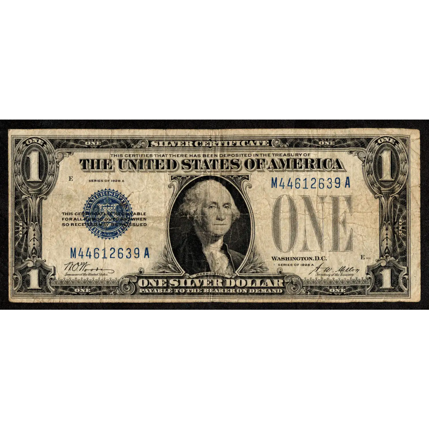 A classic early small-size type, this $1 1928-A Silver Certificate (Fr. 1601) comes from the beloved “Funny Back” series—so named for its ornate and highly decorative reverse design, unmistakably different from the modern $1 bill. Collectors prize these for their short production span, bold blue overprints, and foundational place in small-size history.