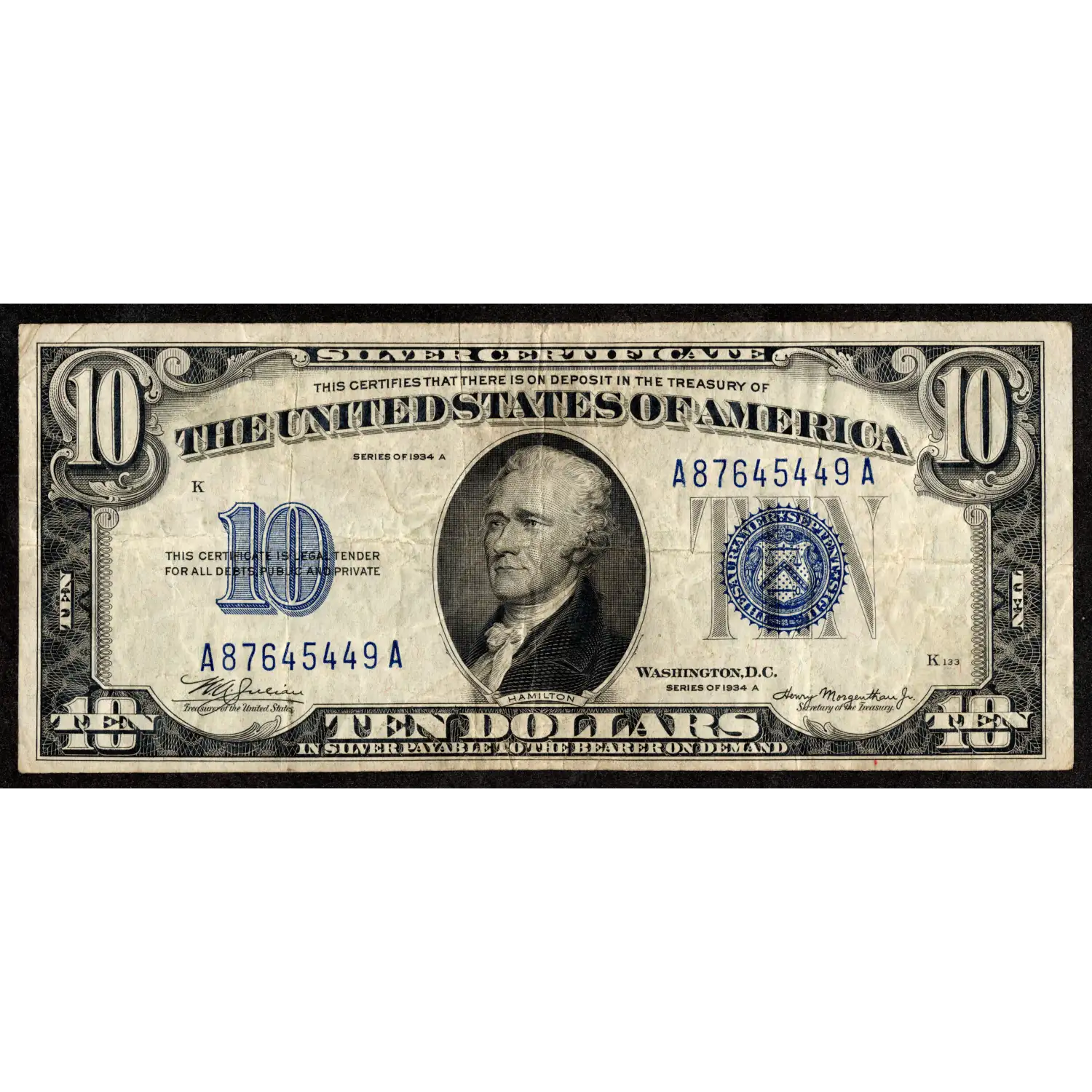 A sharp and attractive example of the 1934-A $10 Silver Certificate, Fr. 1702. The paper is bright, the overprints bold, and the overall presentation is clean and well-balanced.