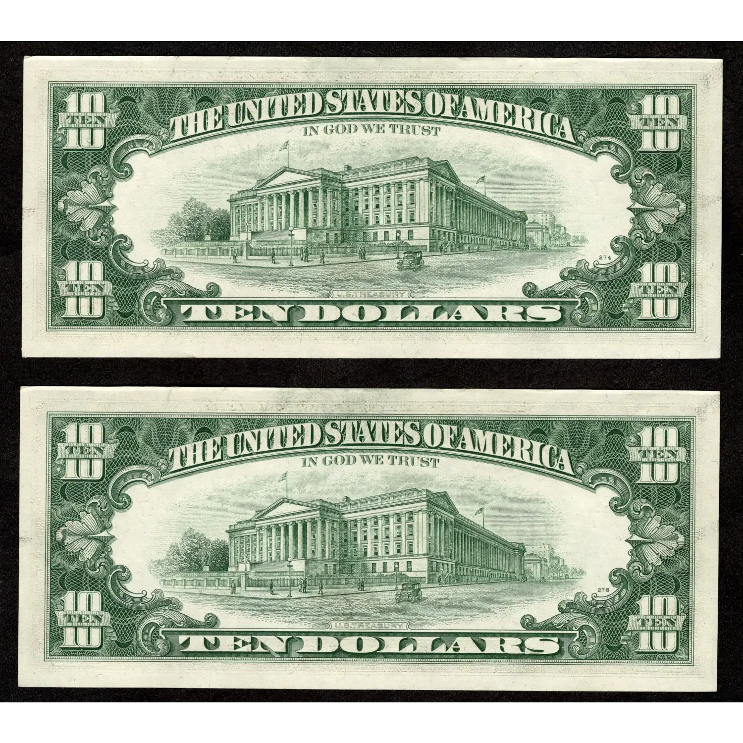 CONSECUTIVE PAIR — $10 1974 Federal Reserve Notes