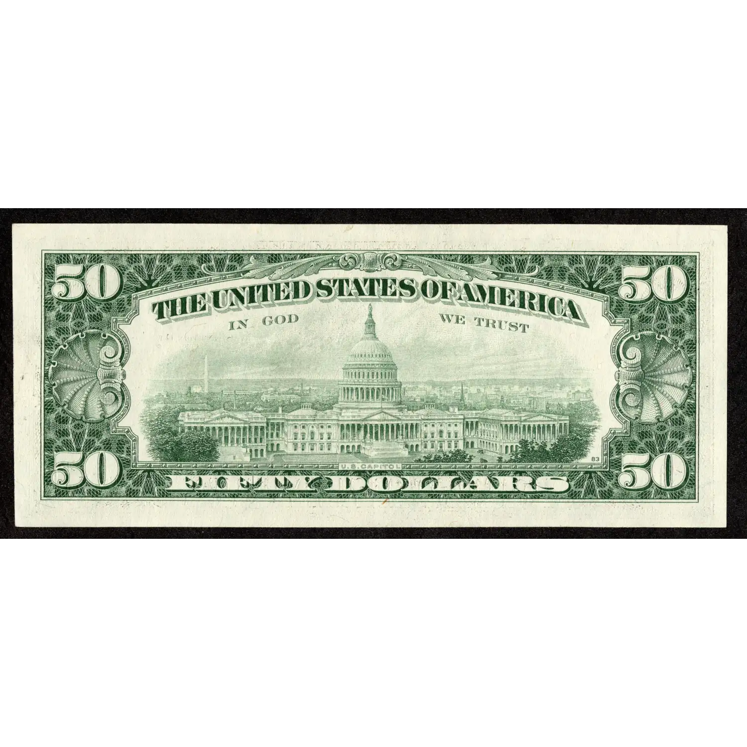 A sharp and desirable Chicago star note, this $50 1977 FRN (Fr. 2119-G★) features the classic small-head Ulysses S. Grant portrait and the traditional old-design layout used before the security redesigns of the 1990s. As a replacement note, it was printed in smaller quantities to substitute for spoiled sheets, giving it added scarcity and collector appeal.