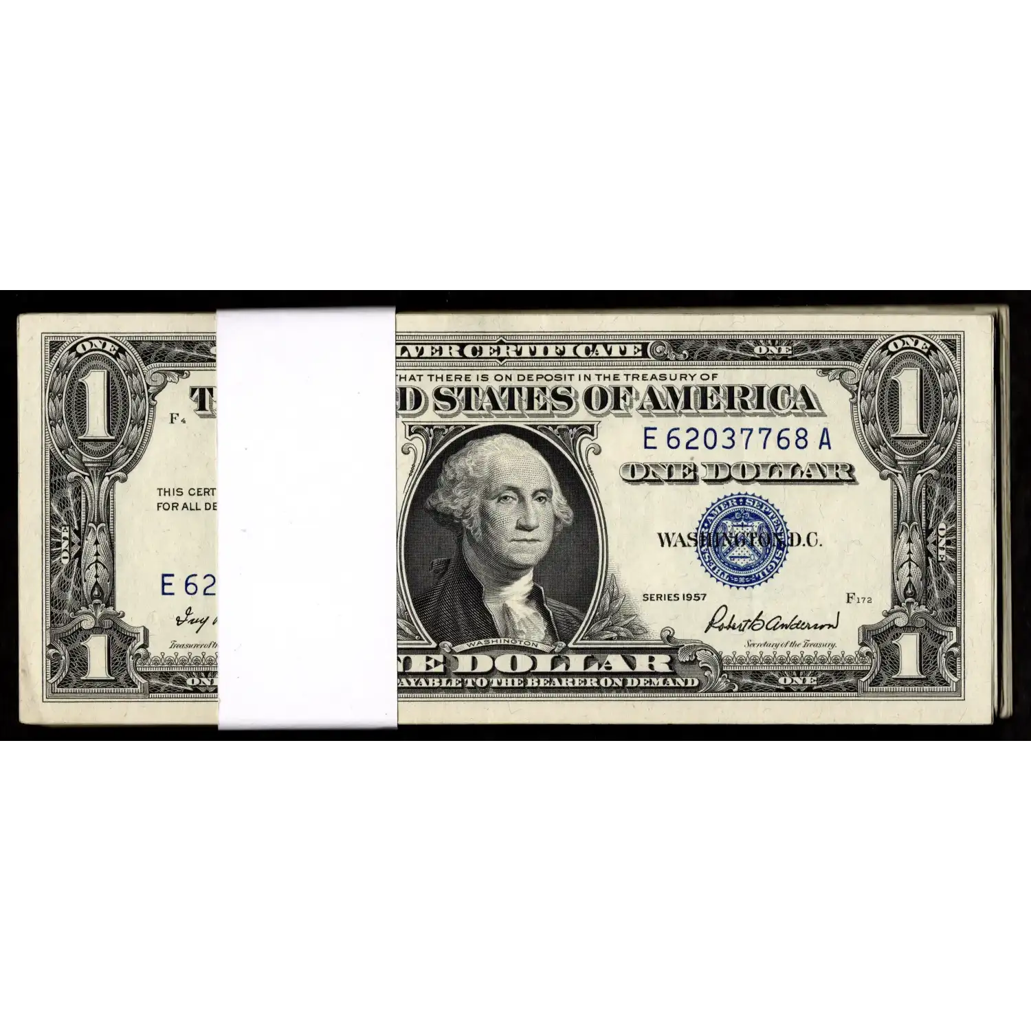 A beautiful set of 25 Blue Seal Silver Certificates—an assembled quarter pack—offered here in problem-free, high-end quality. While the notes are non-consecutive, they share remarkably clean, uniform eye appeal.