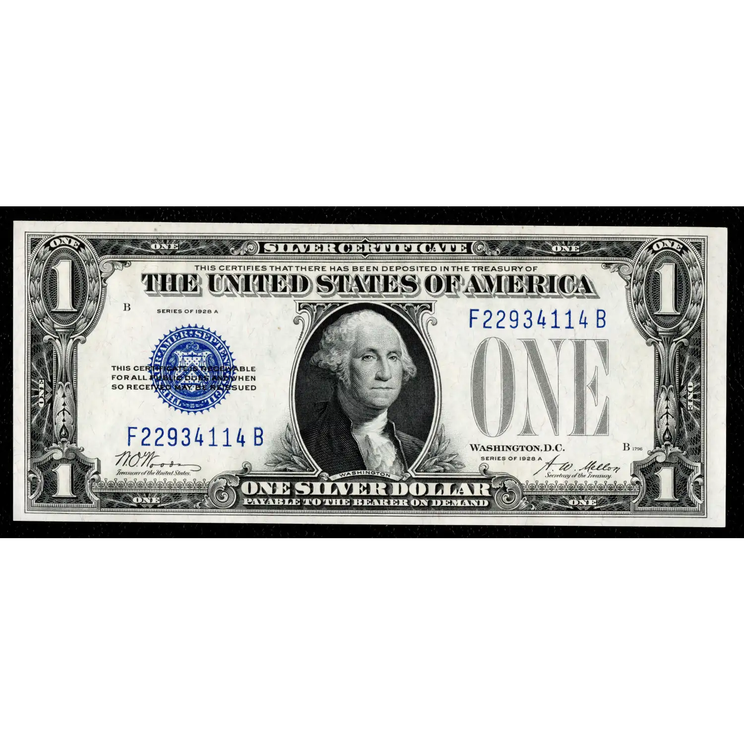 A stunning early silver certificate ace from the first year of issue. This note bears the Woods-Mellon signature combination and is from the F-B block on this always popular, "Funny Back" design.