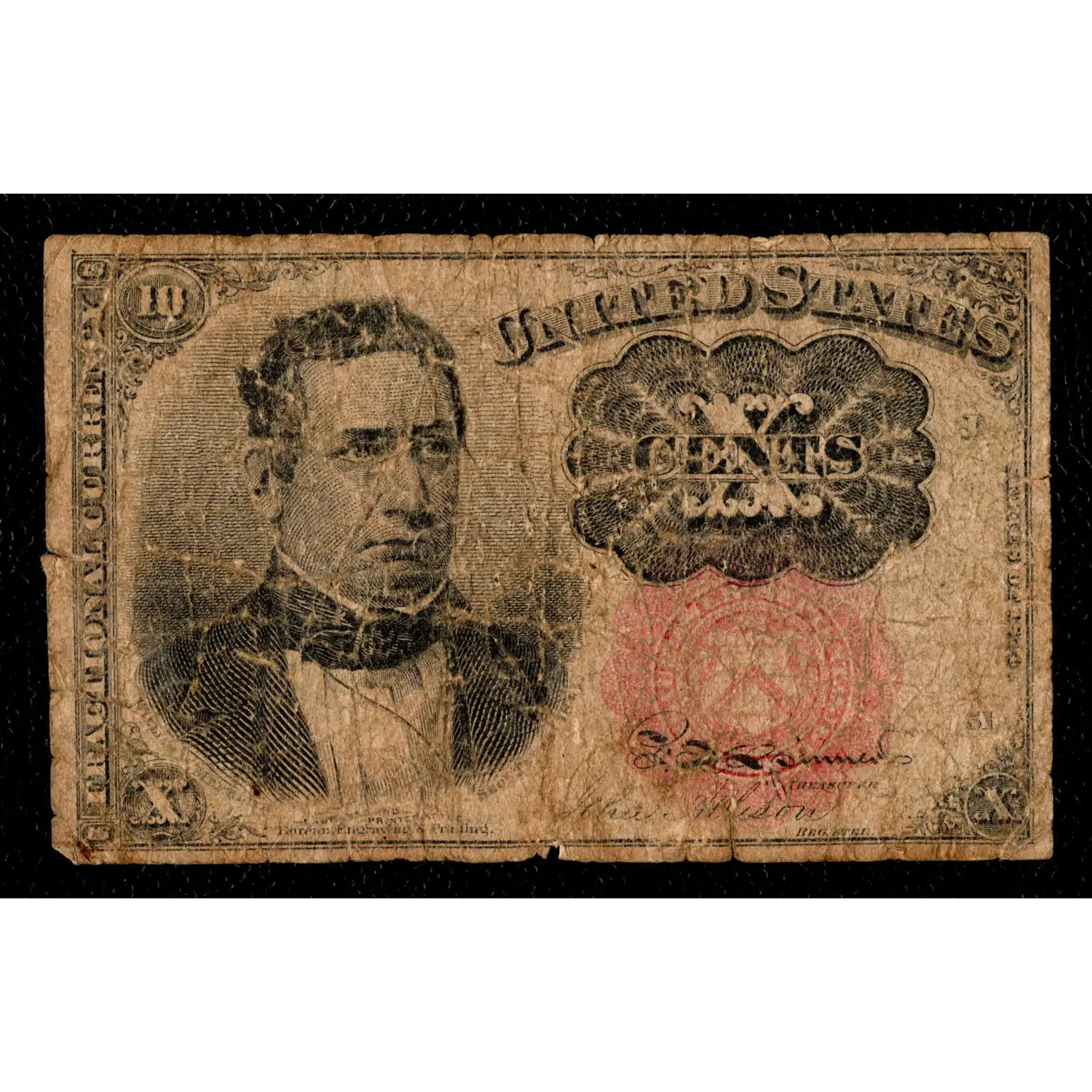 A pleasing example of the Ten Cent Fractional from the Fifth Issue featuring William Meredith, Secretary of the Treasury, 1849- 1850. This note features the long thin key variety and a red treasury seal.