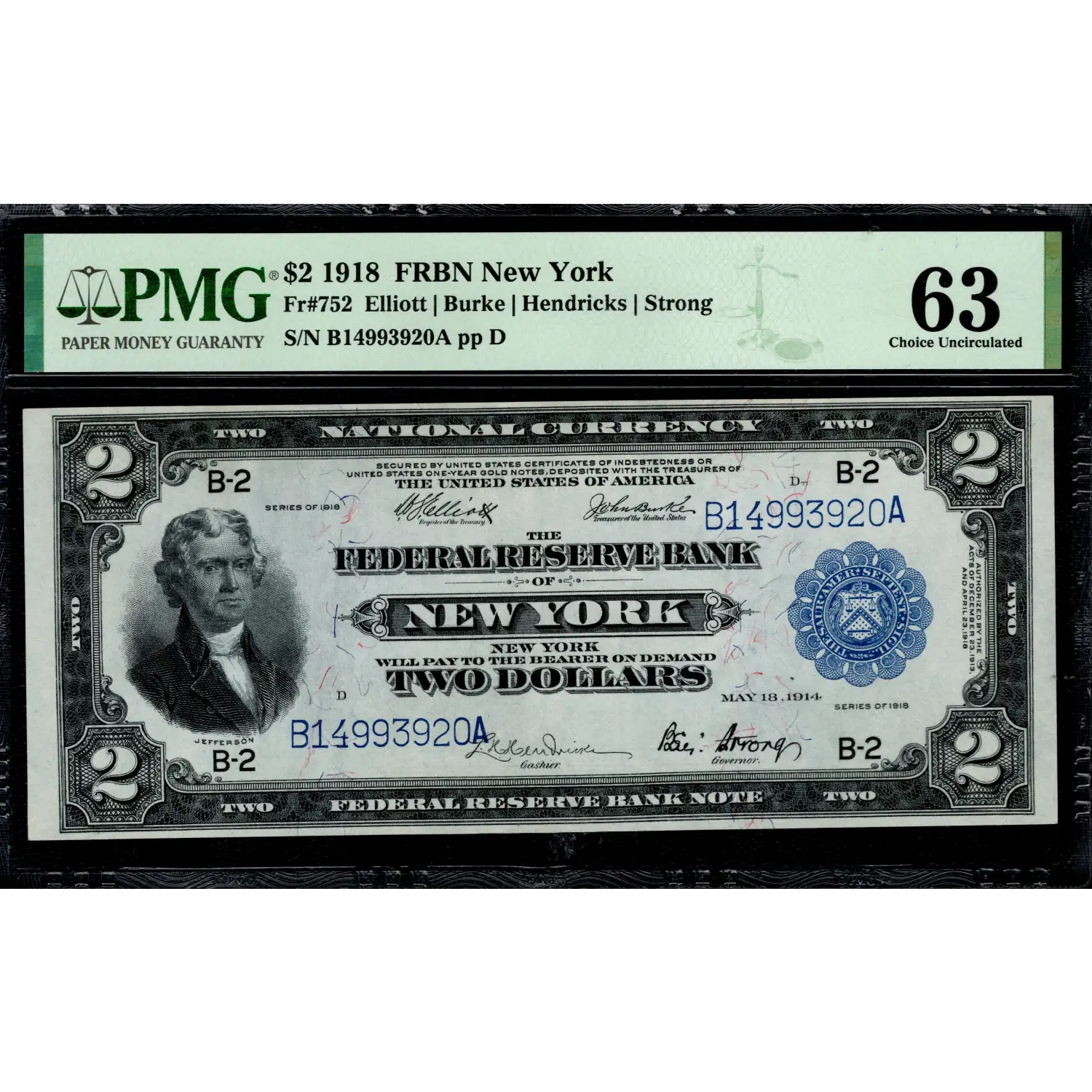 A very attractive New York Battleship Deuce with bright paper, blazing ink colors, and exceptional eye-appeal. Just a touch wider top margin and it would have received a Gem grade.