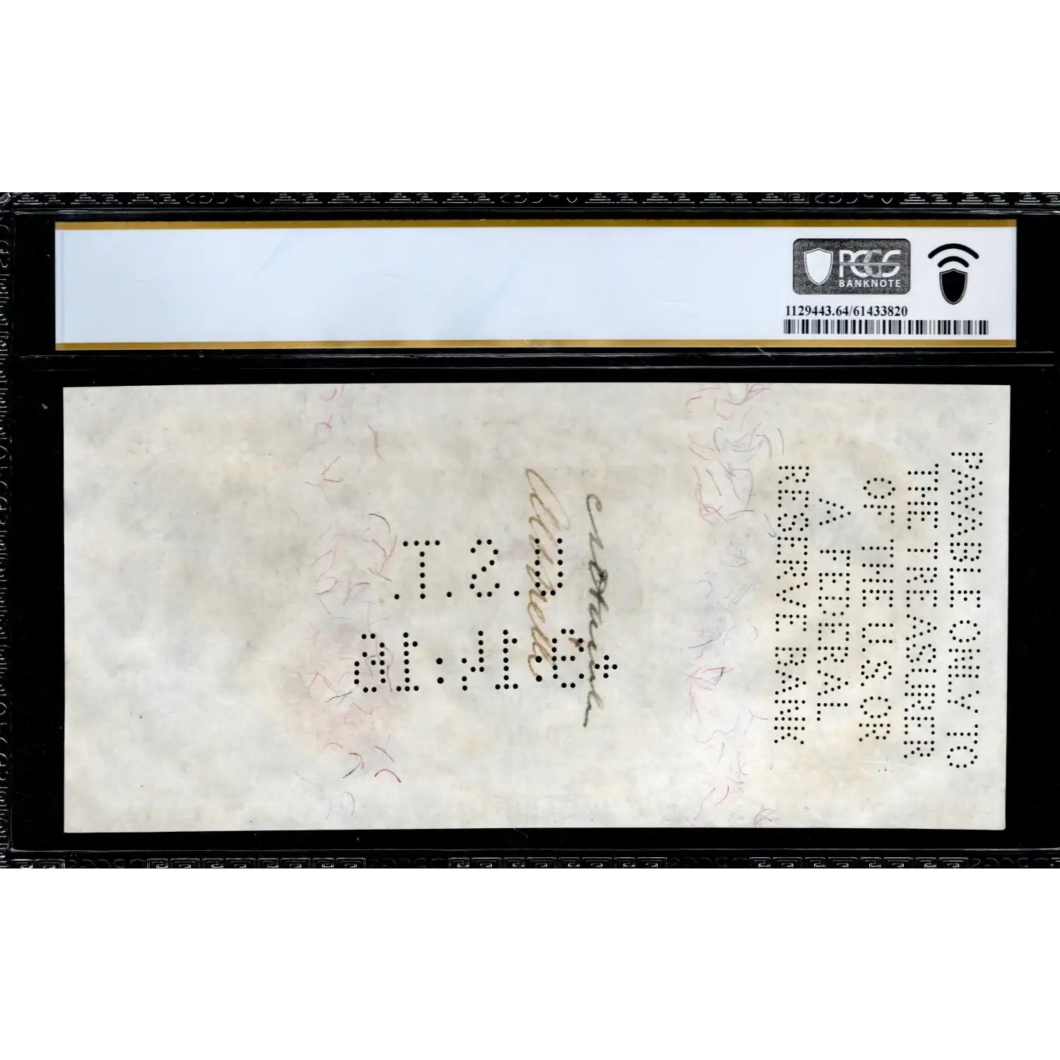 The inks remain bold and there’s a large amount of embossing on the unprinted back. The usual roulette cancel for this Friedberg number is present with a "9 14 (19)16." date. This example was likely a survivor of the five alarm fire that broke out in the Washington, D.C. "Old Post Office" on December 13, 1935 that was tossed out the window before the heat and water could damage this note.Firefighters tossed these notes, along with other combustible material, from the windows of a large filing room on the sixth floor so that they would not feed the conflagration. Lucky onlookers on the street below were able to pick the notes up and spirit them away. Being unredeemable, they are not an obligation of the United States. The paper is bright, the margins are even, and the note would make any Gem collector proud to own.