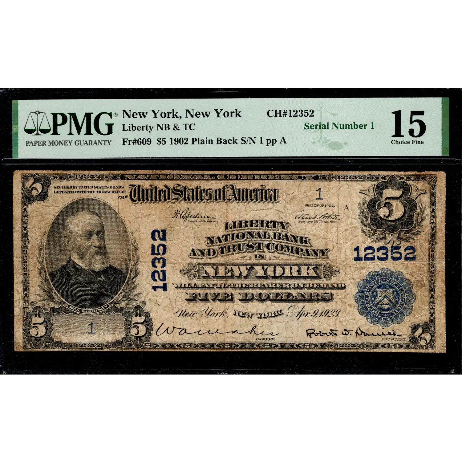 Adding to the impressive data, there are no other public offerings of serial number ones in either Large or Small size notes on this bank and this is UNREPORTED in the census; therefore, if you're looking for a Serial #1 from Liberty National Bank and Trust Company in New York, NY, this is the only opportunity to acquire it!