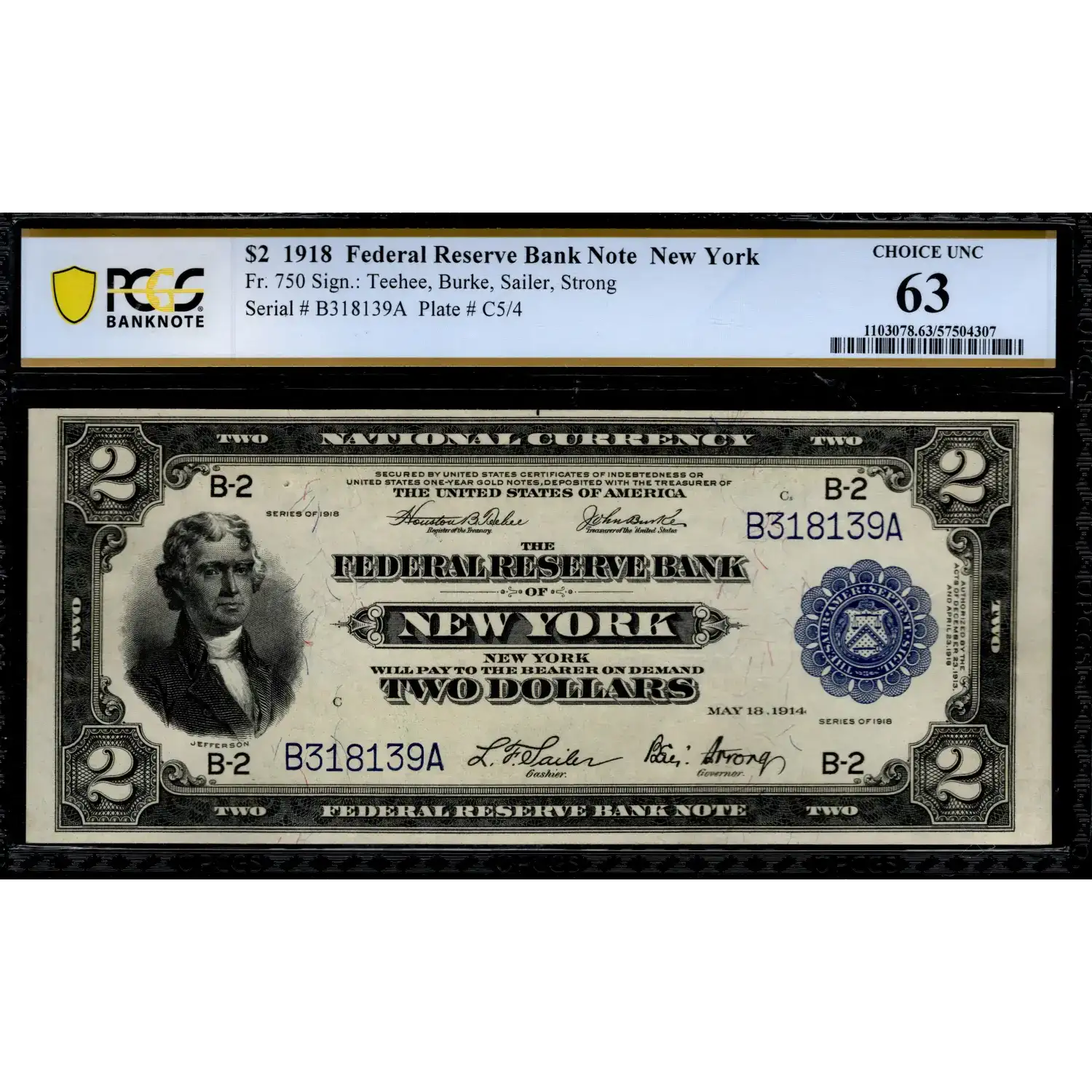 This iconic New York Battleship deuce note faces up like a Gem with balanced margins and terrific eye-appeal! Congratulations to the collector that secures this stunning $2 1918 Federal Reserve Bank Note!