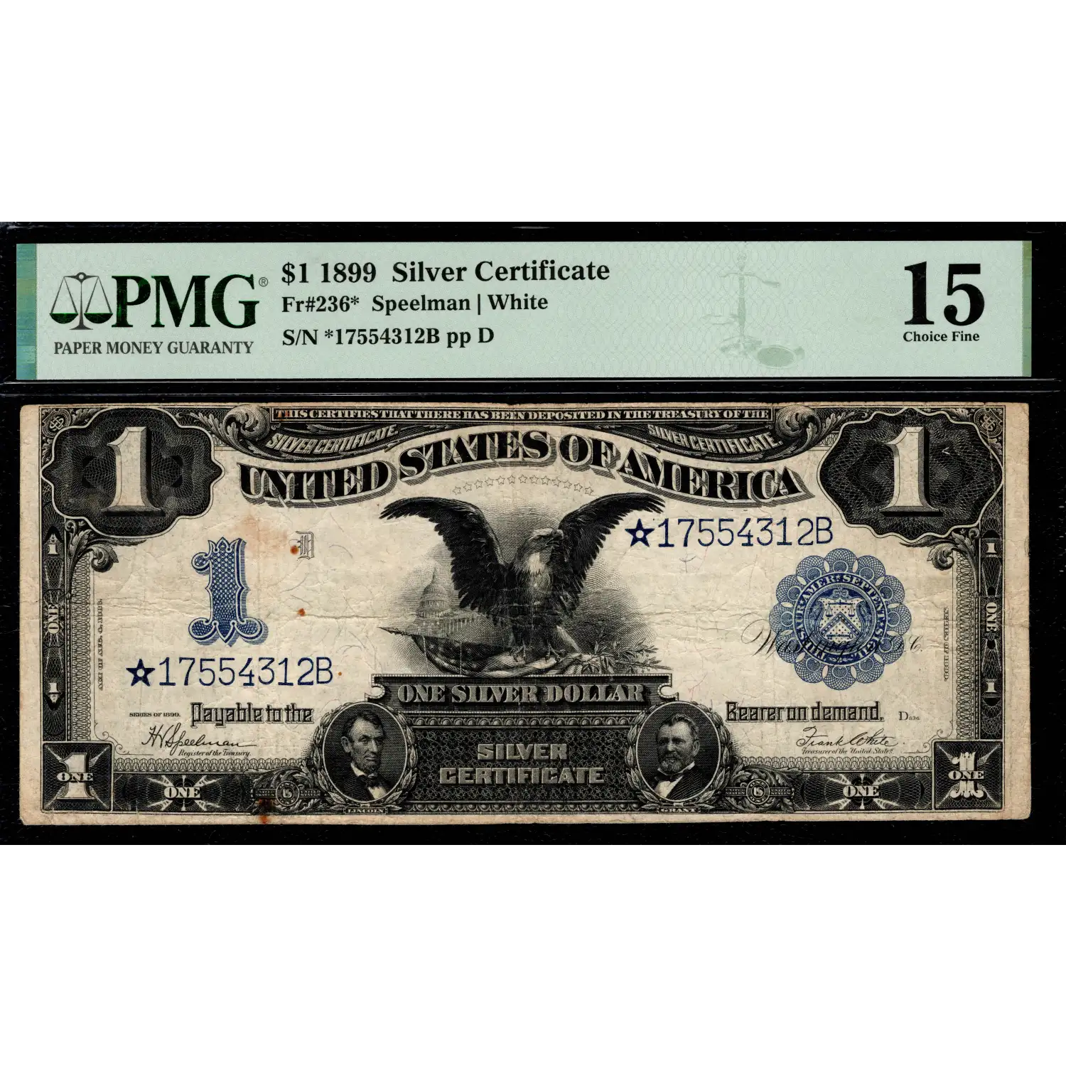 Though circulated, color is bright on this Black Eagle which is coveted because of its star note status. There's a comment of 'minor rust' on the back of the holder. Enjoy a replacement example from the final signature combination on the $1 1899 Silver Certificate.