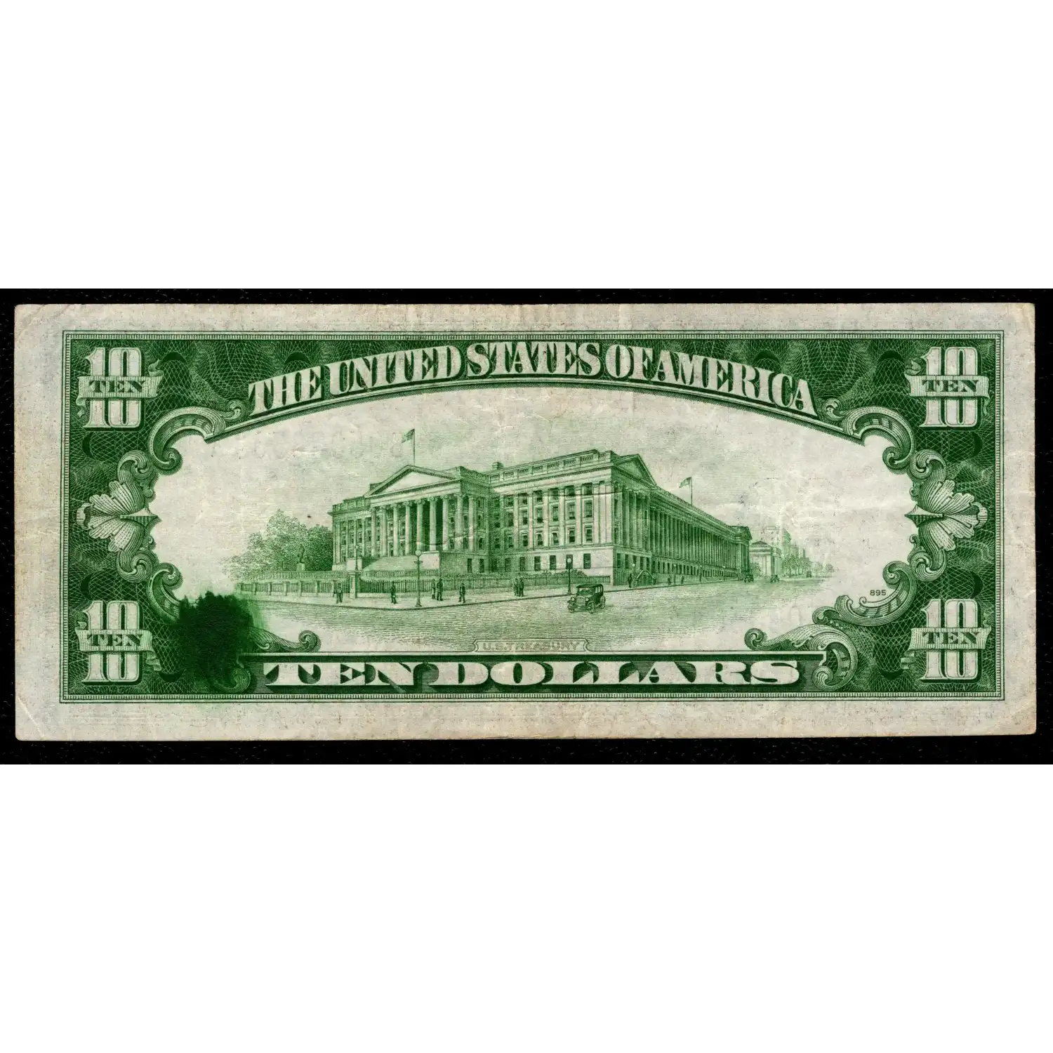 From the back, it's seemingly a simple ink smear error on the back of a $10....however, once you flip the note over and see the yellow seal and blue serials the importance of this note is truly revealed. A tiny ink smear error that's a fraction of the size of this example was hosted on a $1 North Africa that sold last year for more than $500.