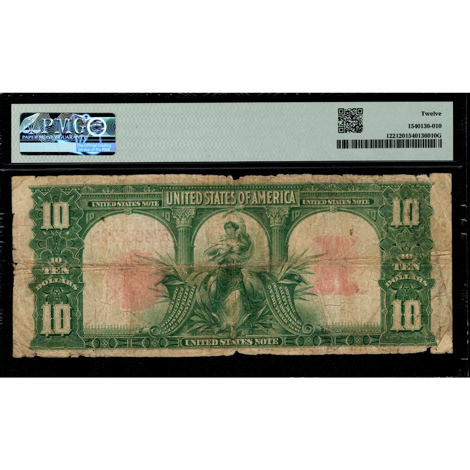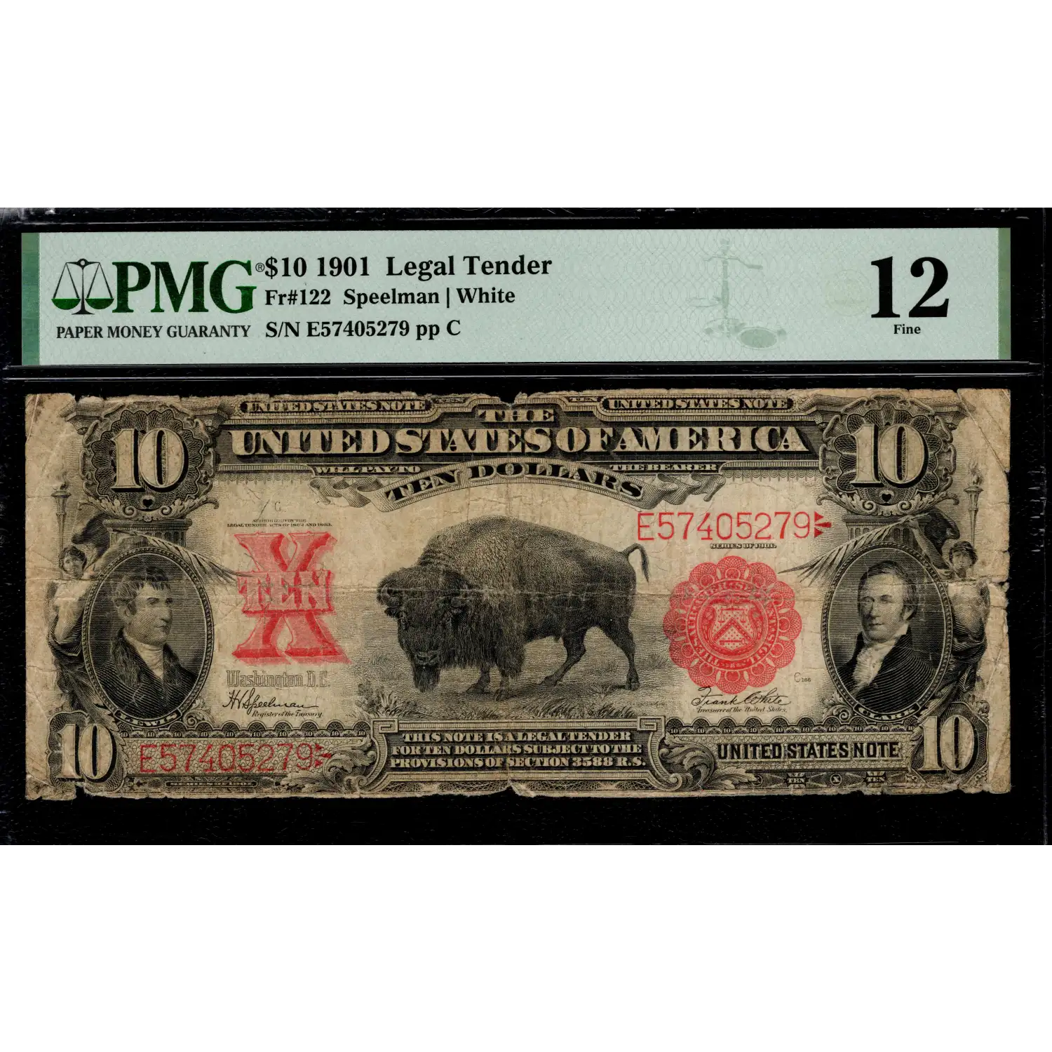 An iconic banknote that quickly gets out of reach in higher grades. This has retained bold inks with no evidence of bleedthorugh that some display. Bearing only grade-consistent handling such as edge fraying with a few missing pieces in the margin, the graders felt this was to be expected for a Fine 12; therefore, the note remains entirely free of any negative comments on the holder. This is a pleasing opportunity to secure a comment-free and affordable example of one of the most sought-after designs of US Paper Money.