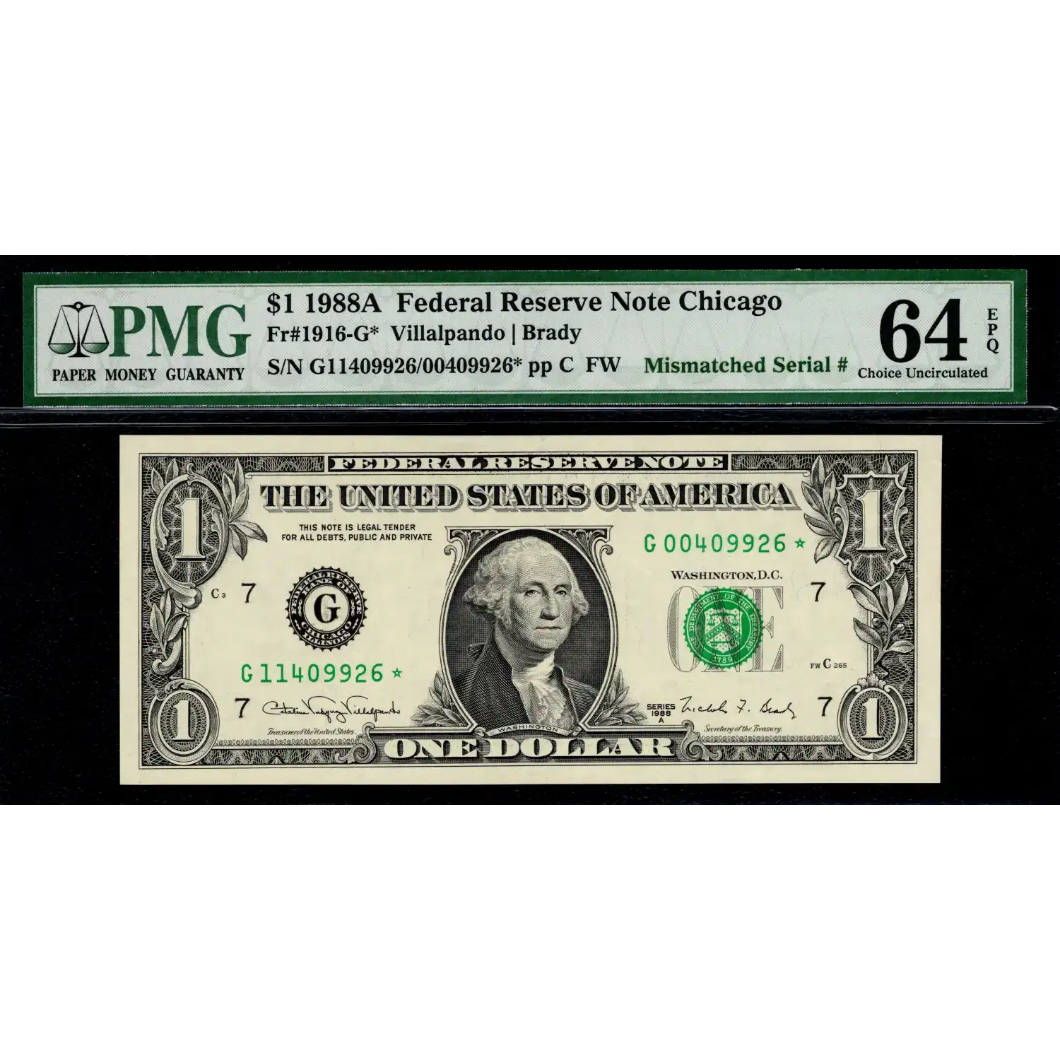 $1 1988-A FRN MISMATCHED SERIAL NUMBER ERROR on STAR NOTE
