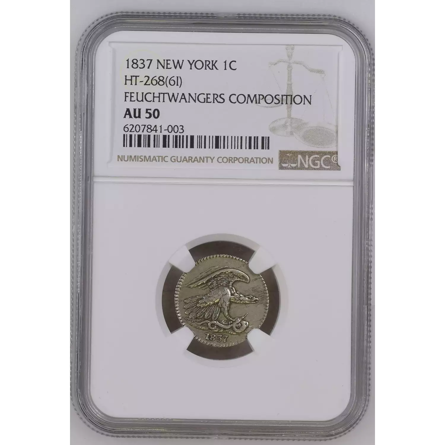 1837 Pvt Tokens 1837 One Cent, Eagle NGC AU-50 HT-268(6I) FEUCHTWANGERS COMPOSITION