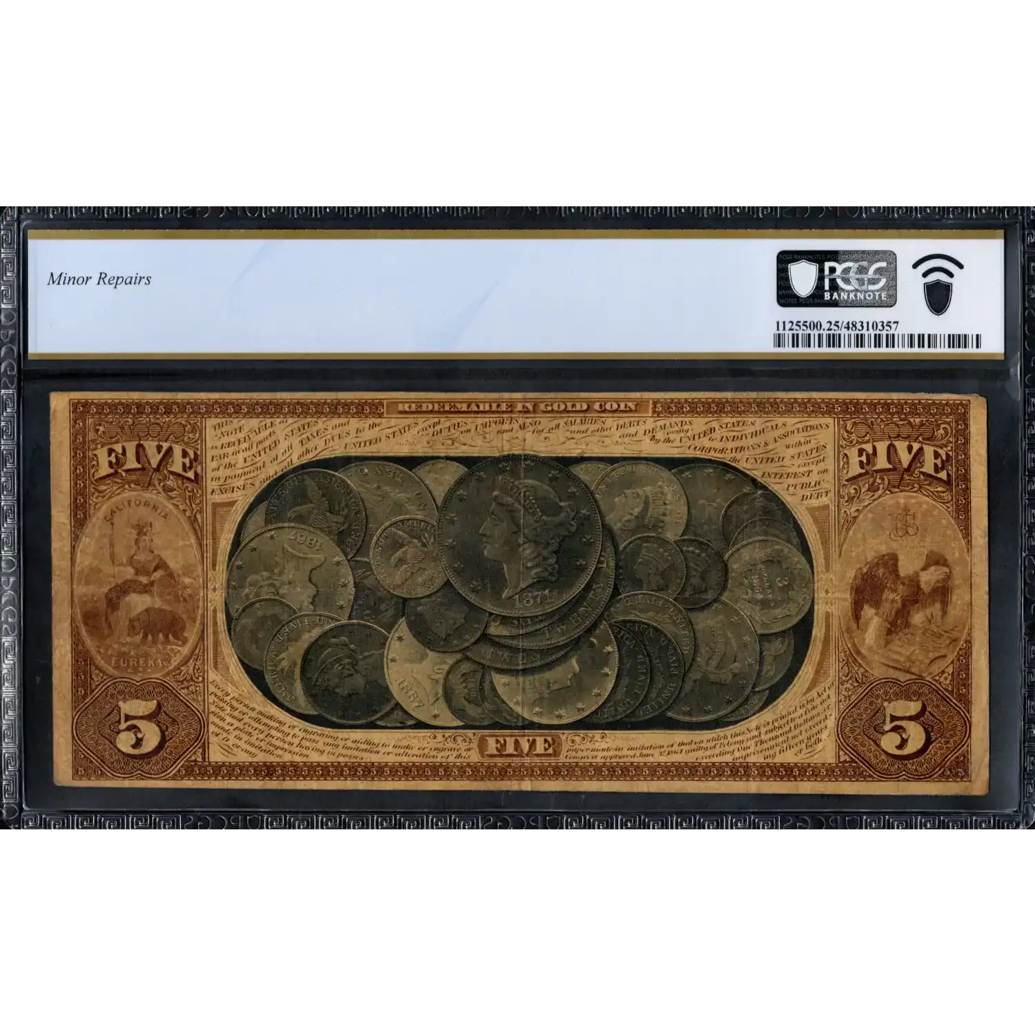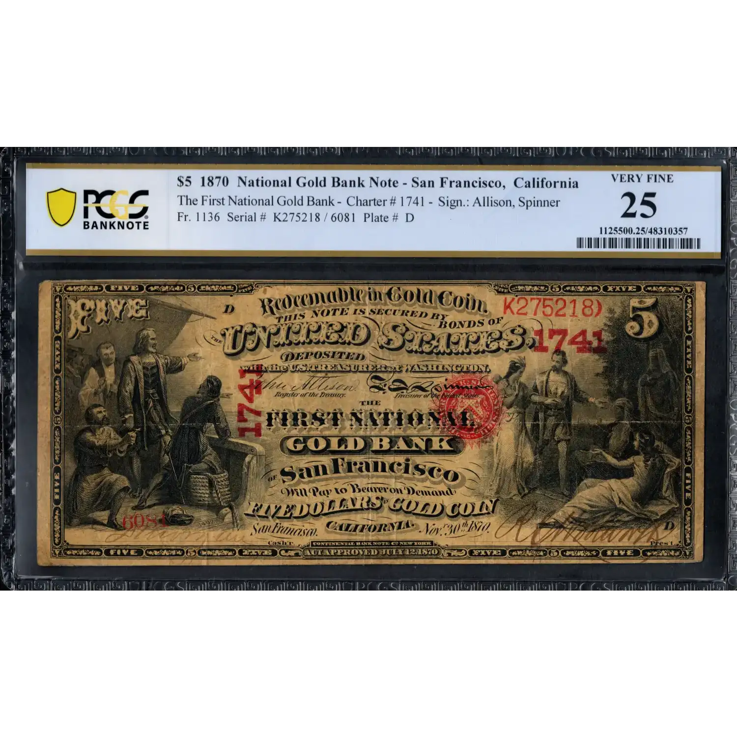 A very high grade $5 San Francisco National Gold Bank Note which easily falls into the top 10% of those graded to date by PCGS.