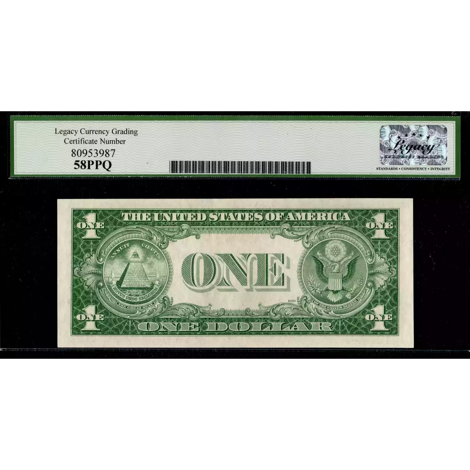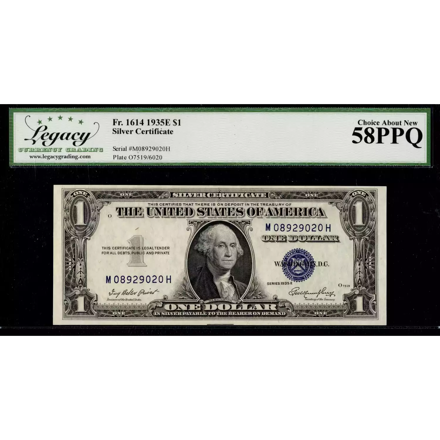 A stunning $1 1935-E Silver Certificate featuring the signature combination of Priest-Humphrey. This note showcases the M-H block and has been preserved seemingly uncirculated with original surfaces and encapsulated in a high-grade holder for generations of protection and enjoyment.