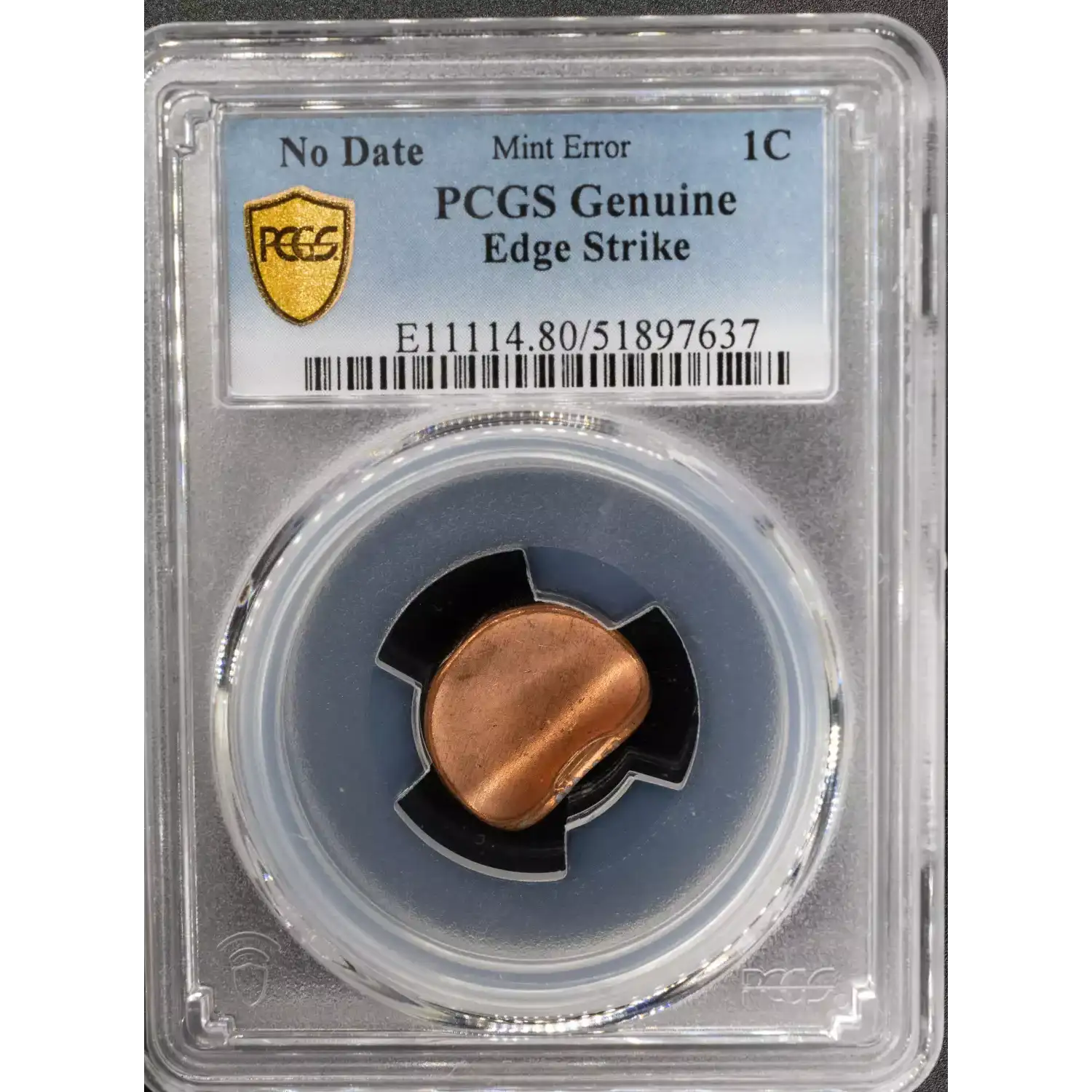 Here is a true mint error rarity! This one cent planchet flipped vertically when the dies came together and as a result was not seated properly between the dies. The planchet received a strike on opposite edges! This bent the planchet when the dies came together and left design elements struck on either edge! A truly fun coin for the eyes, hands, and collection! Certified Genuine by PCGS.