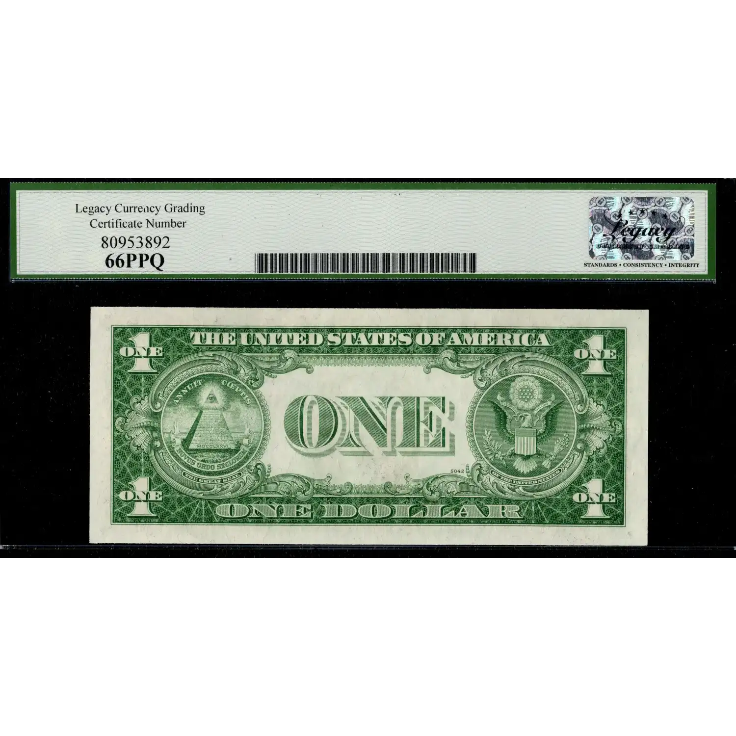 To determine if a $1 1935-D silver certificate is "wide" or "narrow," look at the space below the "ONE DOLLAR" on the back of the note; a wider gap indicates a wide variety, while a smaller gap signifies a narrow variety; you can also check the back plate number, with numbers below 5015 generally being wide and numbers above 5017 being narrow. This particualr example is a Narrow $1 1935-D Silver Certificate from Back Plate #5042 and has exceptional eye-appeal with even margins and original surfaces.