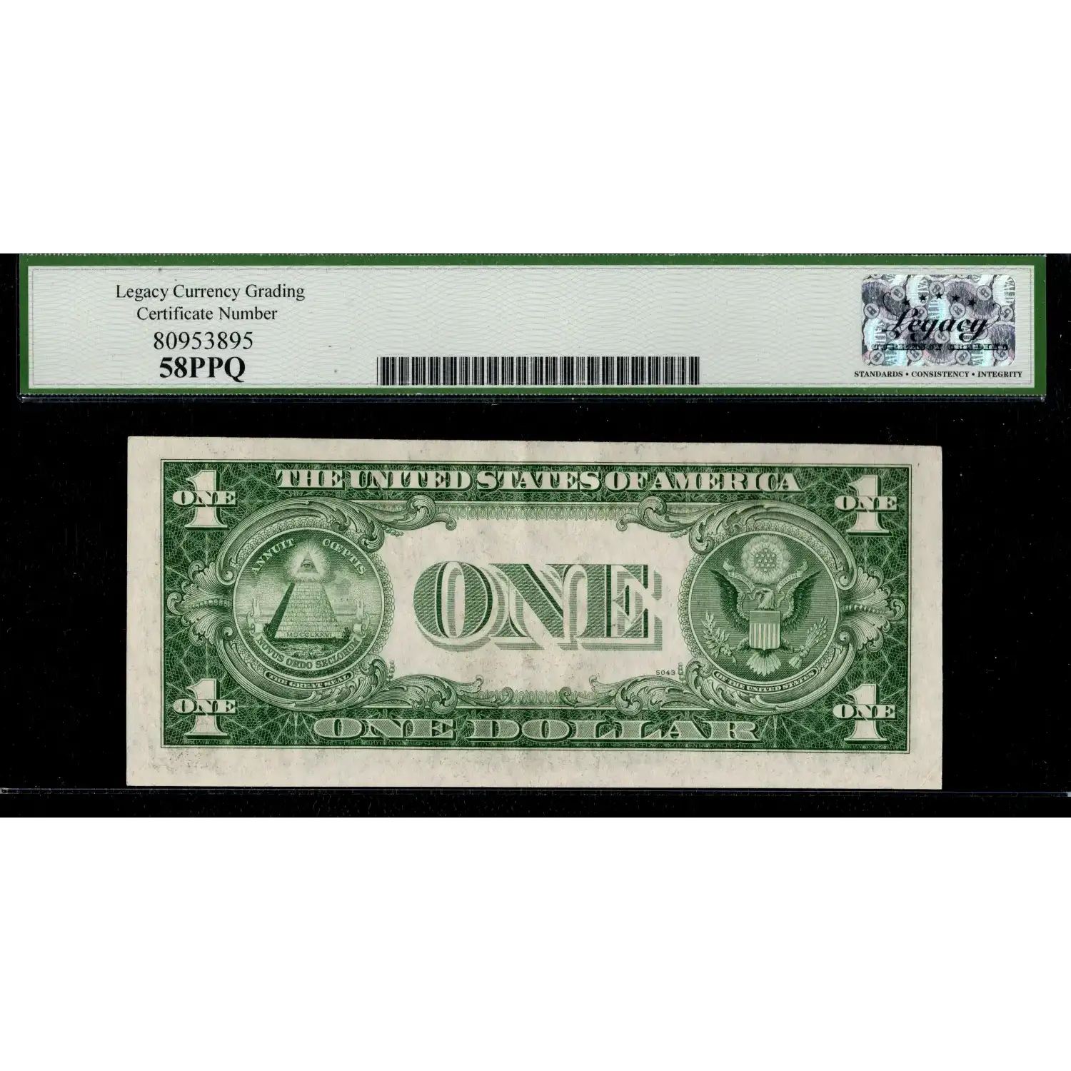 To determine if a $1 1935-D silver certificate is "wide" or "narrow," look at the space below the "ONE DOLLAR" on the back of the note; a wider gap indicates a wide variety, while a smaller gap signifies a narrow variety; you can also check the back plate number, with numbers below 5015 generally being wide and numbers above 5017 being narrow. This particualr example is a Narrow $1 1935-D Silver Certificate from Back Plate #5043 and has exceptional eye-appeal with even margins and original surfaces.