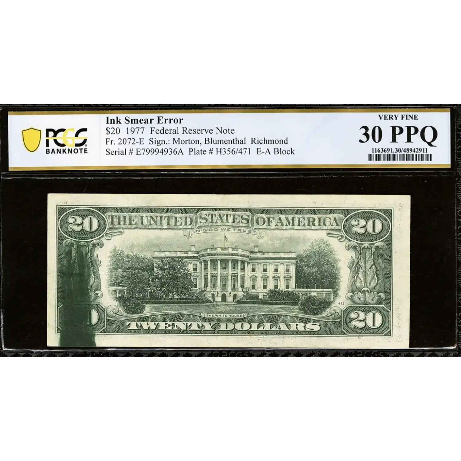 We're excited to welcome this original, affordable, and dramatic ink smear error on an exciting $20 denomination that's been preserved wtih a collector in-mind and easily earned the Premium Paper Quality designation which isn't too common for mid-grade notes. The only thing an error collector likes more than a dramatic error is an affordable dramatic error!