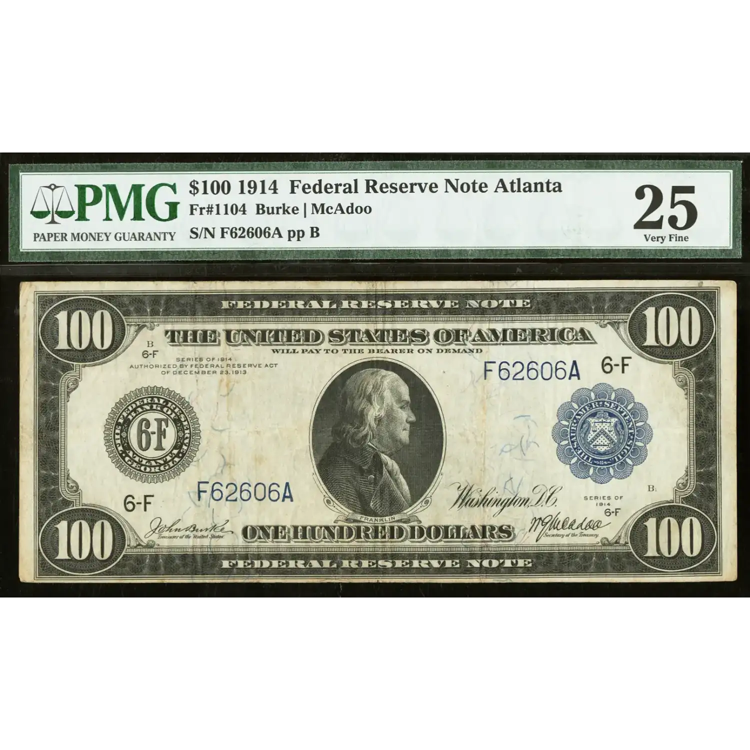 An evenly circulated example of this blue seal Atlanta $100 FRN that has good color and solid paper for the grade.