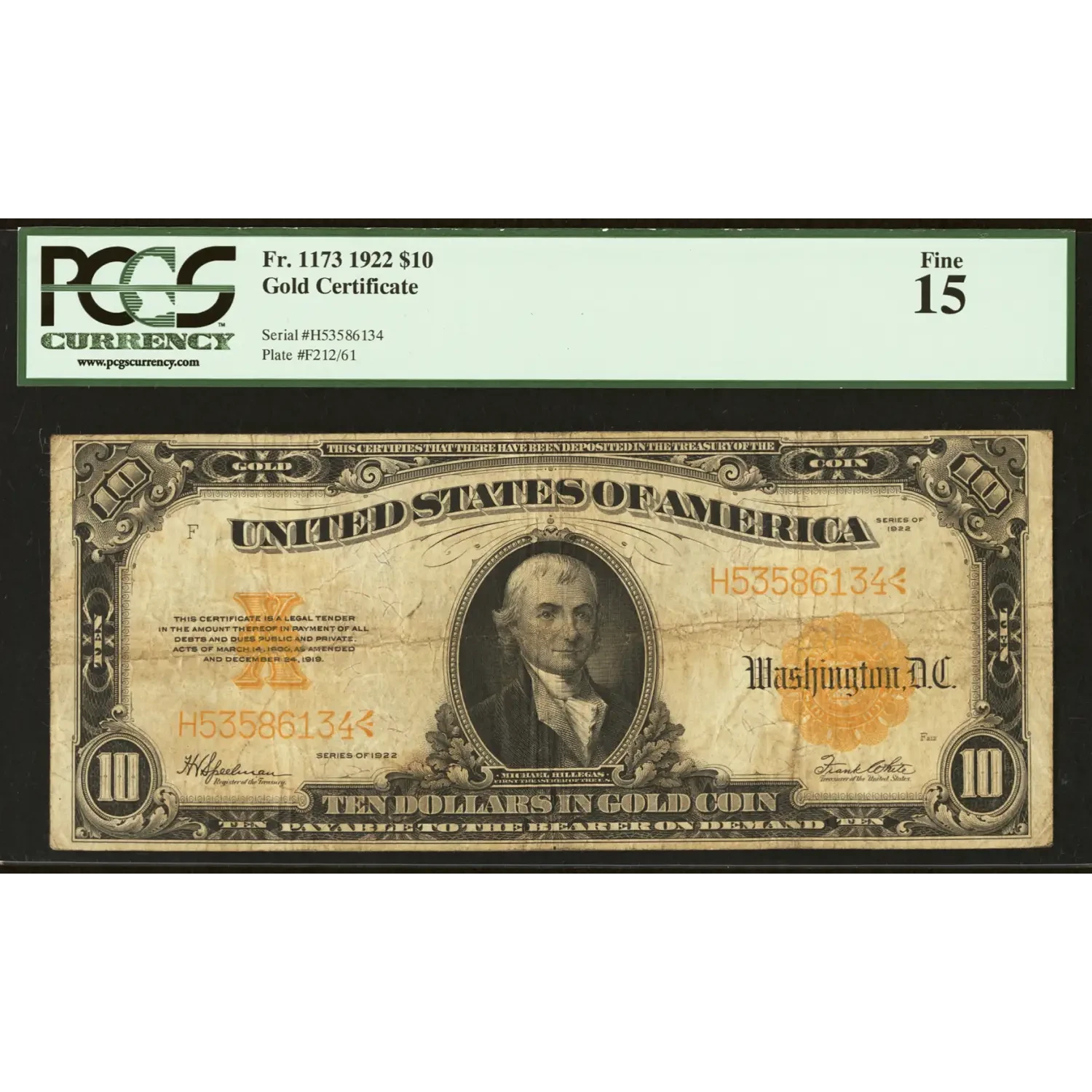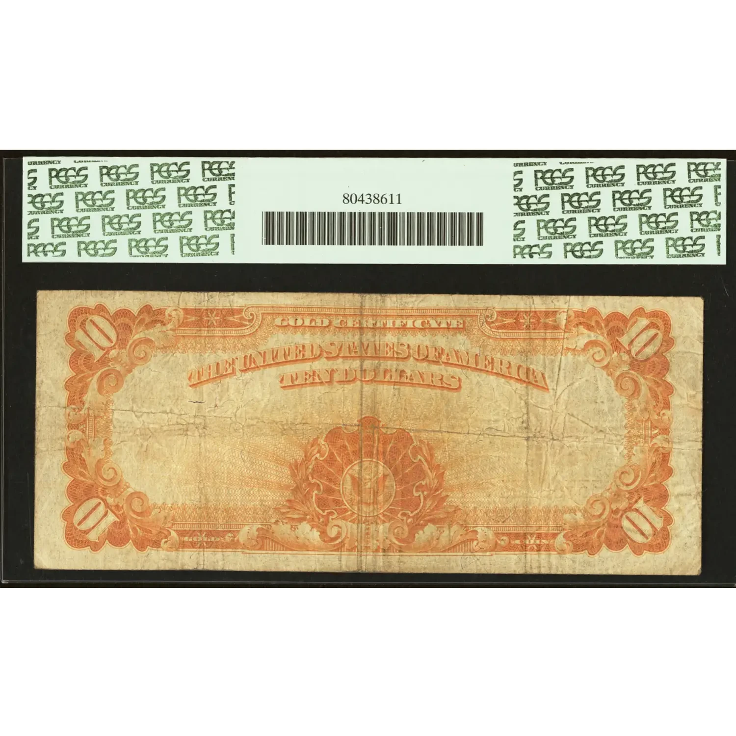 Exceptional color for the grade with a vibrant back! Some notes sit 15 points higher with dingy brown and well-oxidized backs, but this is a note to be proud of at a price fit for an intelligent or entry-level collector looking to add a large size $10 gold certificate.