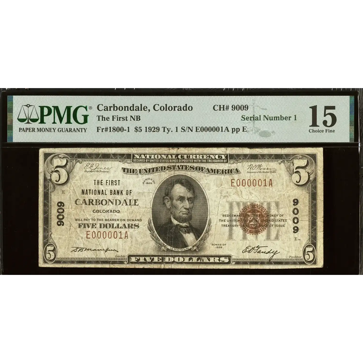 Bearing serial number E000001A, this evenly circulated and solid note is the only Serial Number 1 example that has been publicly offered from this sought after Garfield County bank in over six decades!