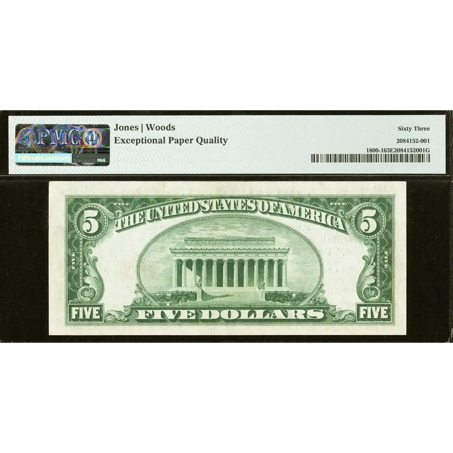 A most attractive example from this small size only Montgomery County bank, this is the top note from the first sheet of $5s issued by this charter. This "A" position Serial Number 1 note features natural paper wave and embossing.