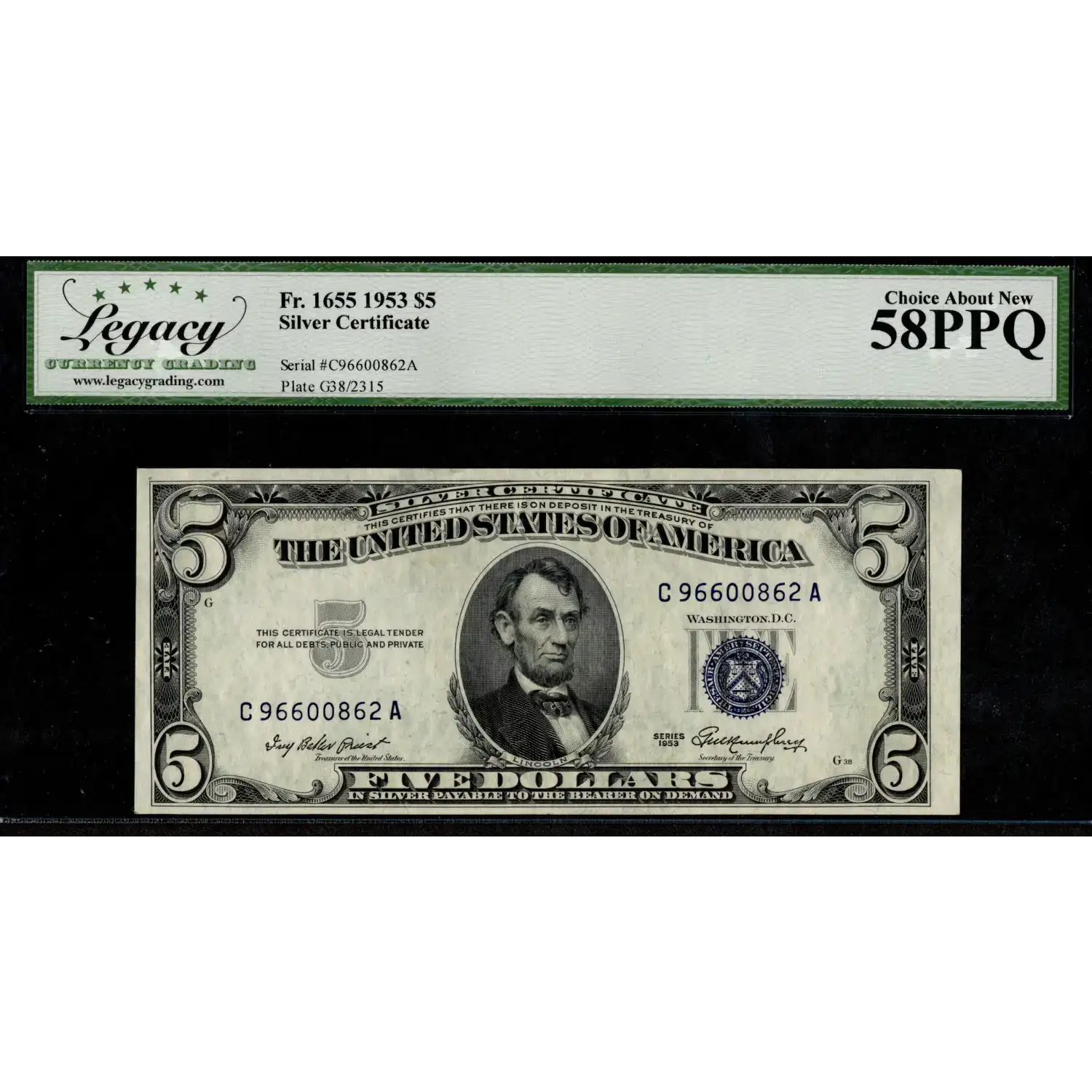 A stunning 1953 five dollar blue seal from the C-A block that's been preserved in fully-original condition in a grade a collector can be proud of!
