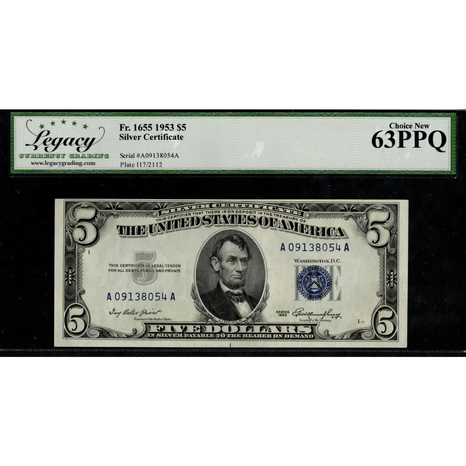 A stunning 1953 five dollar blue seal from the A-A block that's been preserved in fully-original condition in a grade a collector can be proud of!