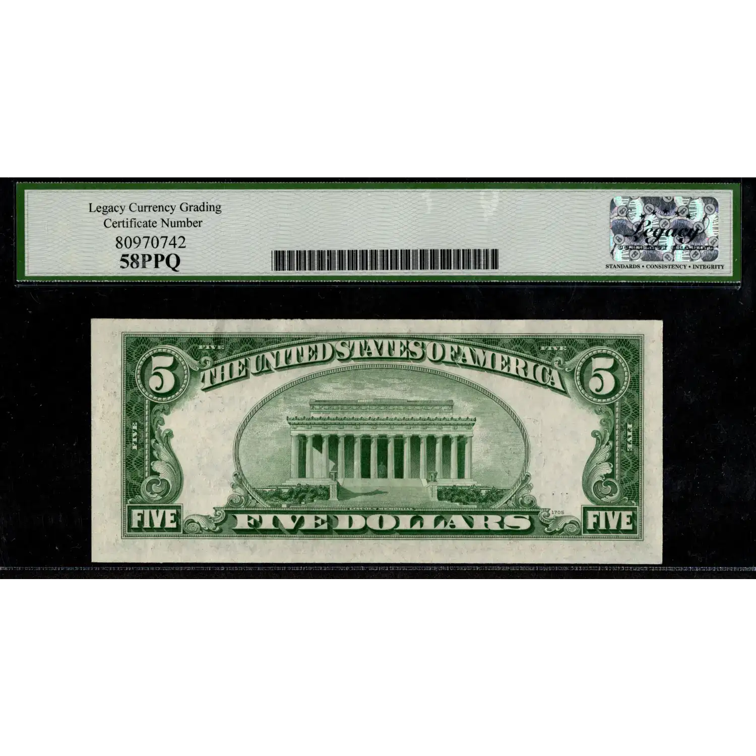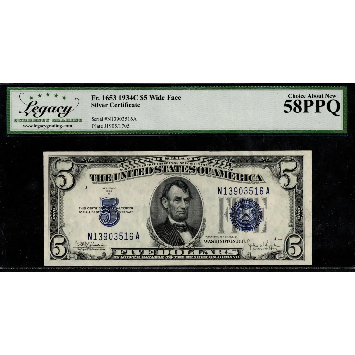 An attractive $5 1934-C Silver Certificate that features the Wide Face variety!
