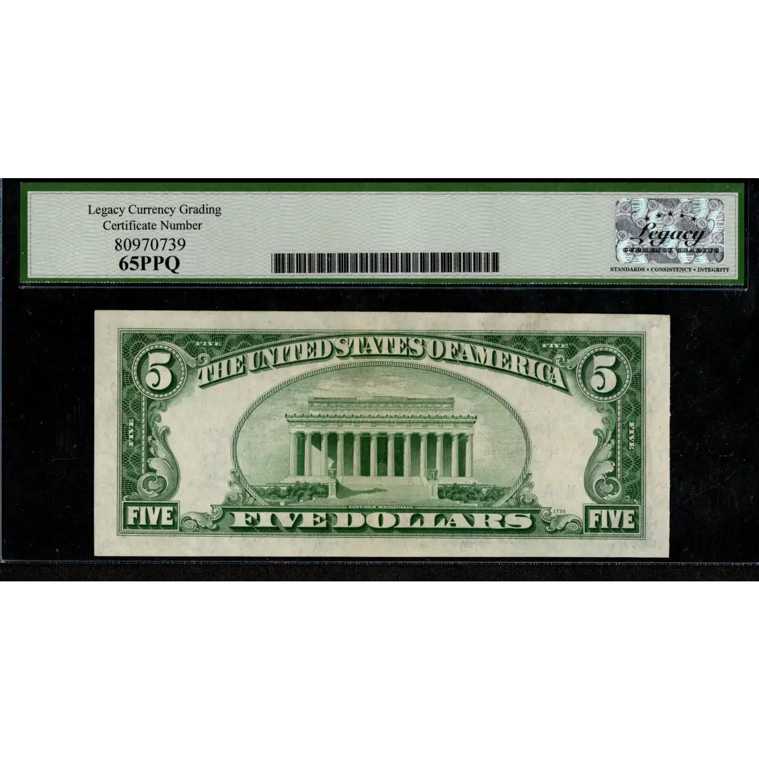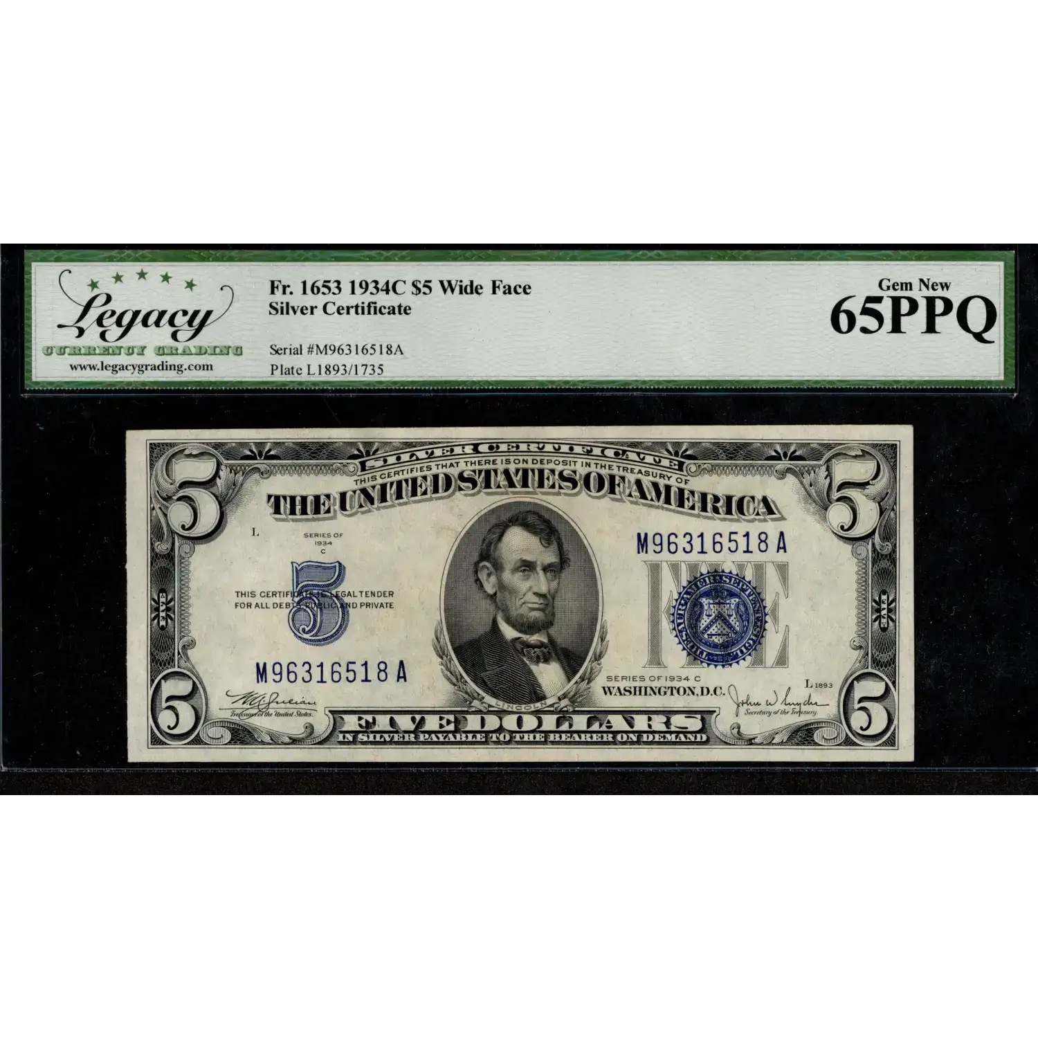 An attractive $5 1934-C Silver Certificate that features the Wide Face variety!