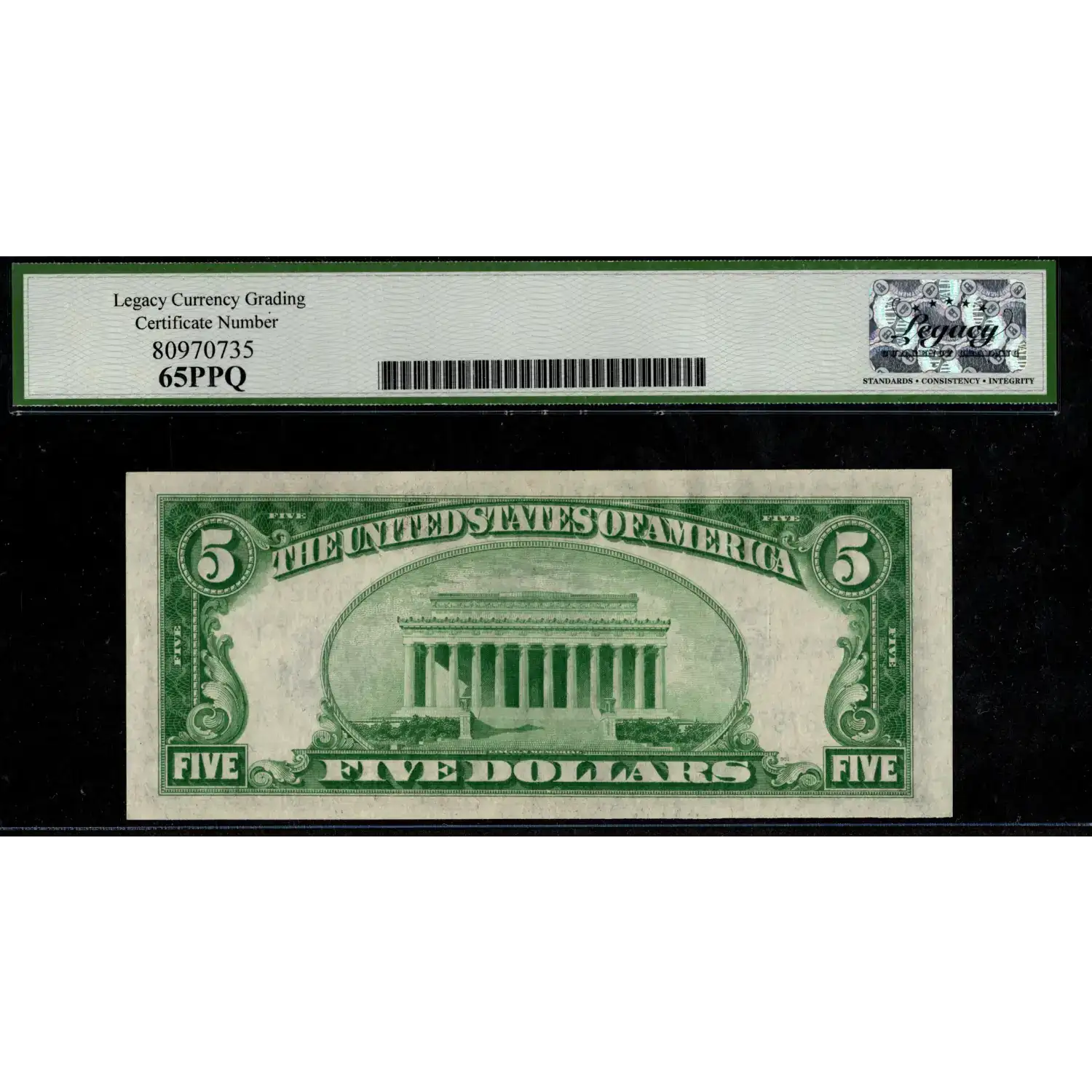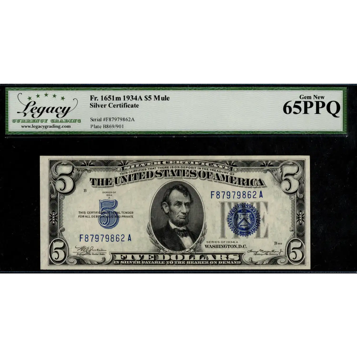An exciting 1934-A $5 silver certificate mule that'sbeen preserved in pristine condition!
